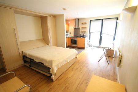Full Description This canal side studio is offered fully furnished with integrated kitchen including fridge/freezer, washing machine and cooker. Open plan living space with fold down bed. Separate spacious bathroom with large shower unit with power shower. The apartment also benefits from a private terrace area set right on the canal towpath. Watermarque Apartments also benefits from having on site 24 hours concierge.