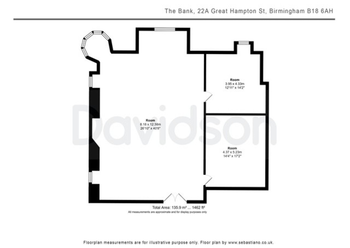 Davidson Estates is delighted to offer these spacious, third (top) floor, street facing, office premises set within a striking Grade II listed building occupying a prominent position on the outskirts of Birmingham's renowned Jewellery Quarter. In all the property enjoys 1,389 sq. ft. of space. Formerly used as a bank, the building retains an abundance of period features combining historic charm with an impressive, modern, professional presence. The building also ensures excellent connectivity being located on Great Hampton Street, one of Birmingham's main arterial routes and proximate to the Jewellery Quarter train station.