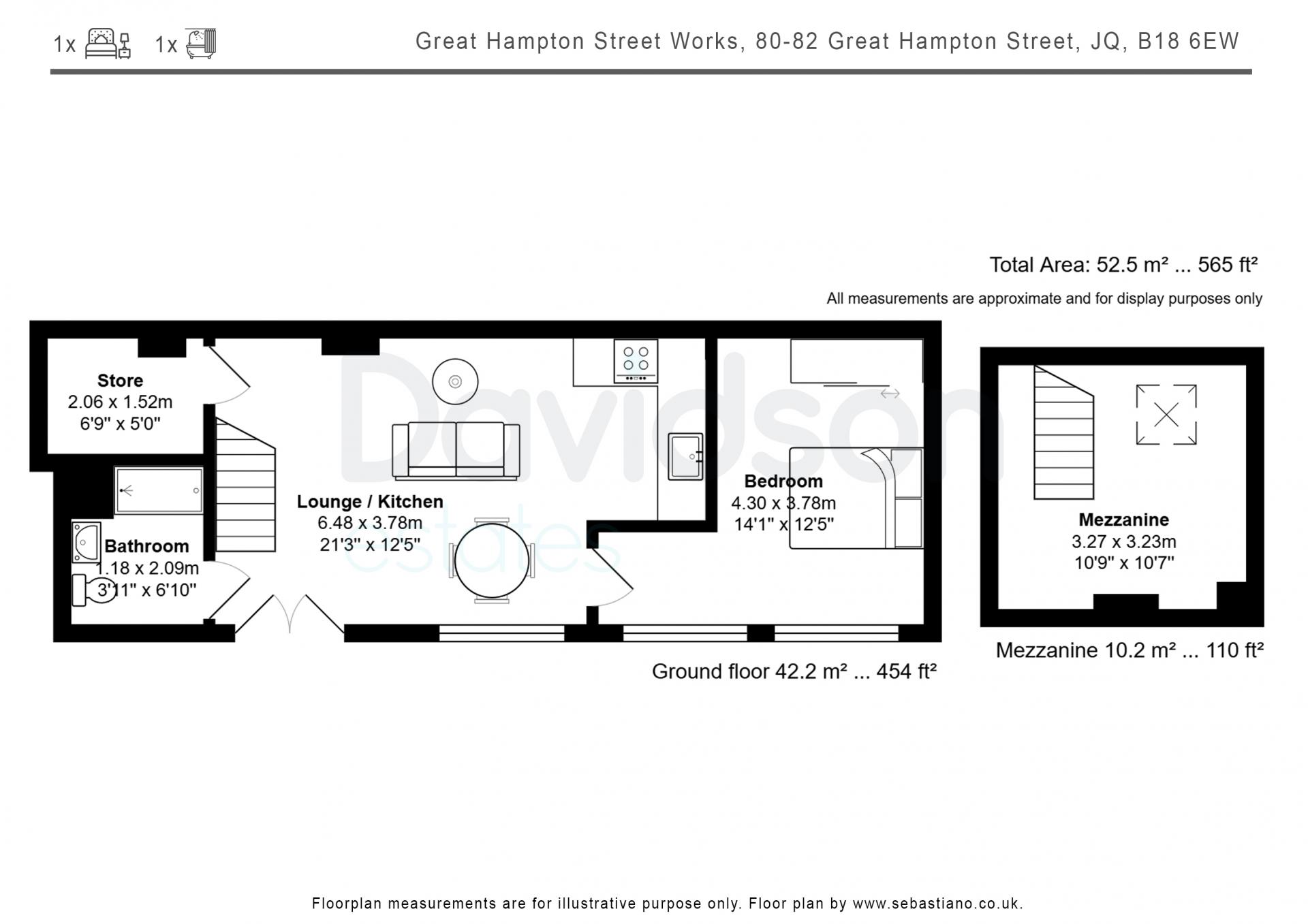 Exceptional 1-bedroom, 1-bathroom mezzanine apartment A spacious 565 sq ft layout with character, comfort, and style