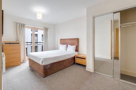 The apartment comprises of entrance hallway leading through to a spacious open-plan living room with Juliet balcony and fully integrated kitchen including dishwasher, master bedroom with bathroom en-suite and Juliet balcony, a second double bedroom, a family size shower room and large storage cupboard.