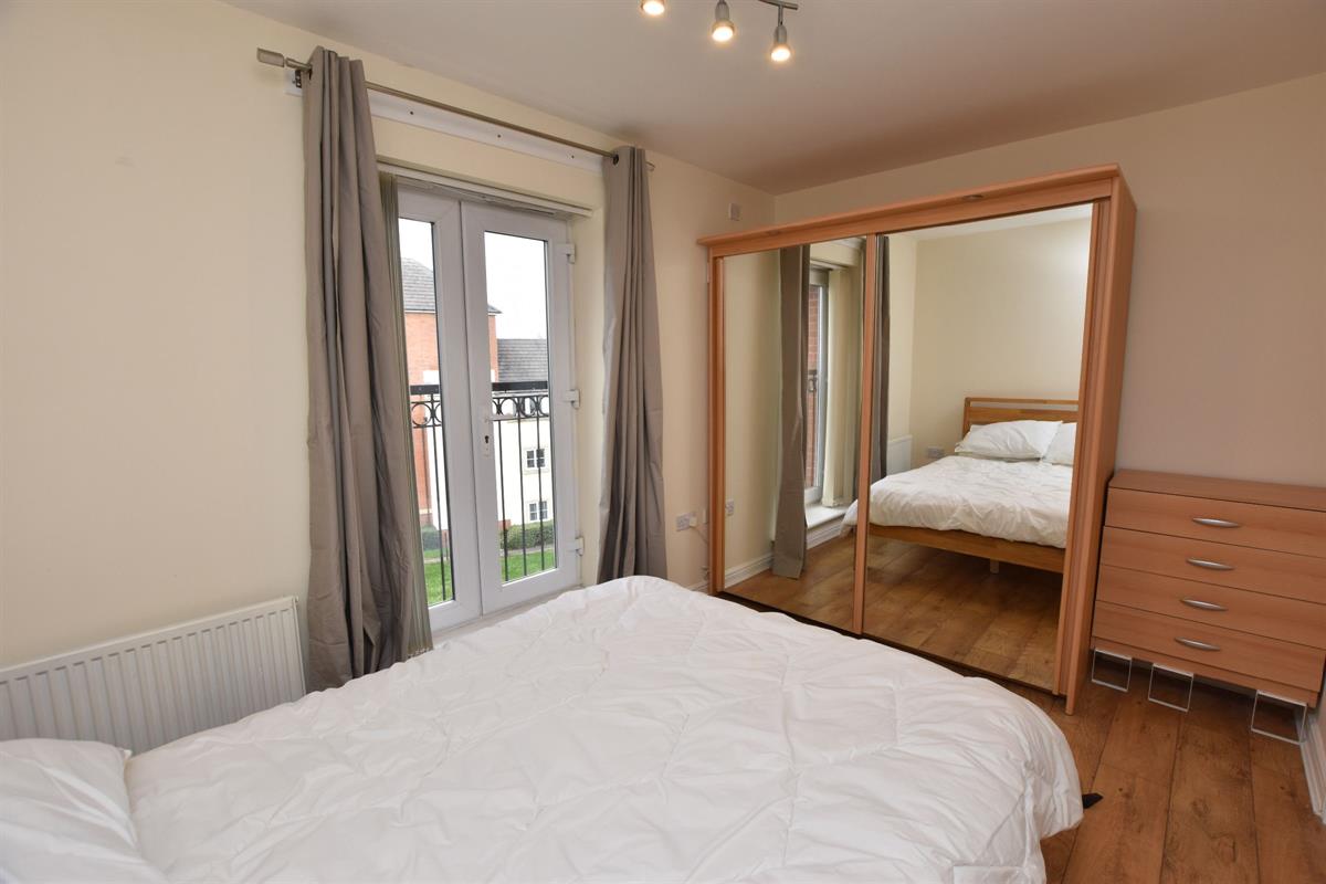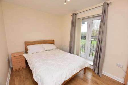 The apartment offers two double bedrooms, including a larger double bedroom with a Juliet balcony, and a second smaller double bedroom.