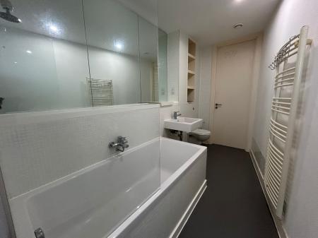 Both bedrooms are well-proportioned doubles, with the principal bedroom benefitting from a modern en-suite bathroom, providing privacy and a hotel-style finish. A second contemporary bathroom serves the guest bedroom and living area, making the apartment ideal for professional sharers or couples.