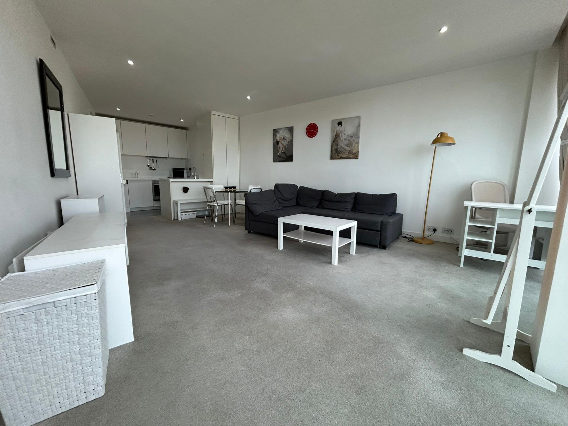 The apartment features a sleek open-plan living and dining area, perfectly designed for modern city lifestyles. The fully integrated contemporary kitchen is both stylish and practical, offering streamlined cabinetry and quality appliances ideal for everyday living and entertaining.