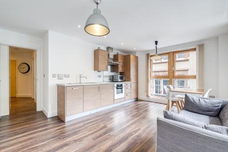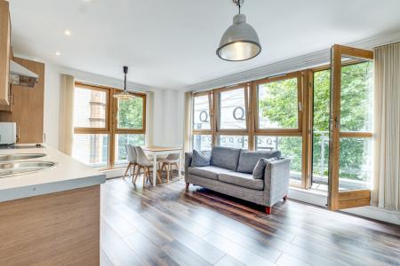 Full Description A spacious furnished apartment with open plan living room giving access to a large private balcony. The kitchen comes complete with appliances and plenty of storage, two double bedrooms and a large separate bathroom.