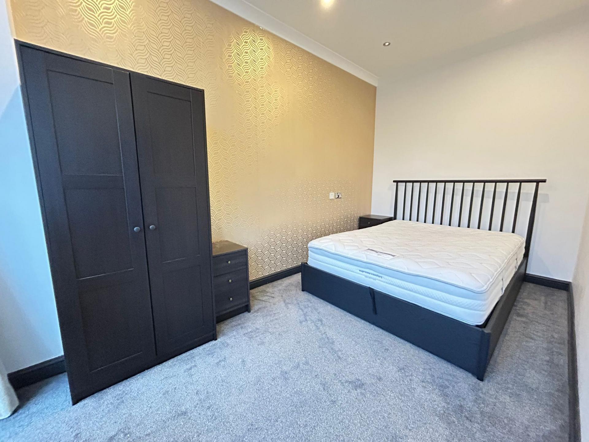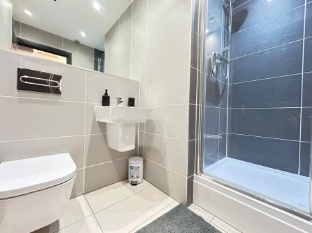 The spacious double bedroom provides a calm and comfortable retreat, while the contemporary bathroom is finished to a clean, modern standard, completing the apartment's smart and well-kept feel throughout.