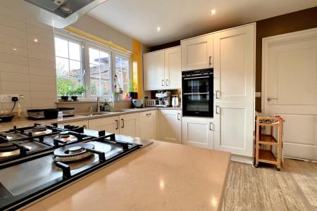 An executive home of real substance offered in excellent condition throughout. This family home boasts five generously sized bedrooms two en-suite bathrooms, family bathroom and an impressive master bedroom. Further benefits include an open plan living and dinning area, garage, utility room, downstairs WC, two reception rooms, built in storage, driveway and a well-presented garden. Located within close proximity of local amenities, transport links and local schools.