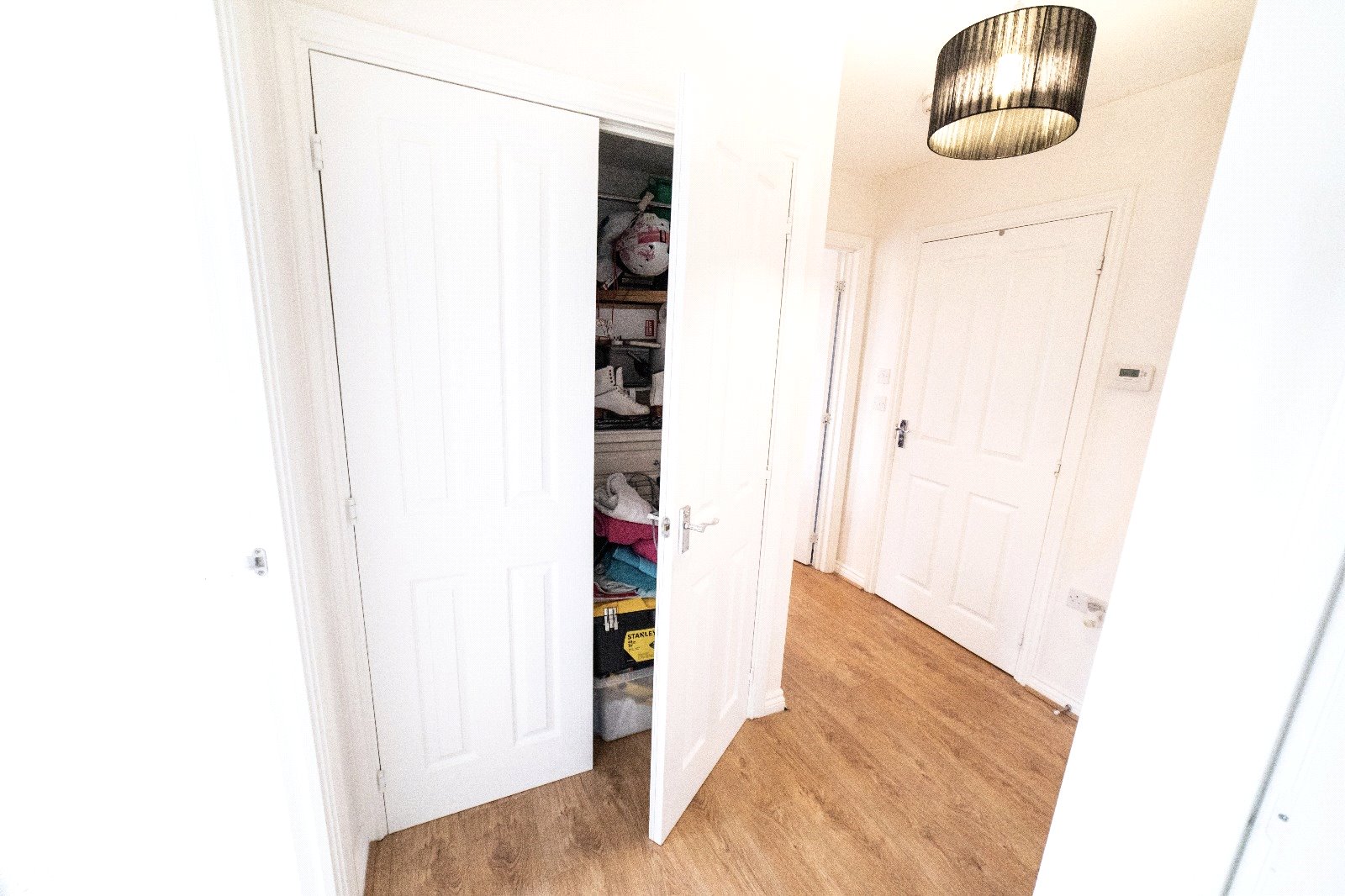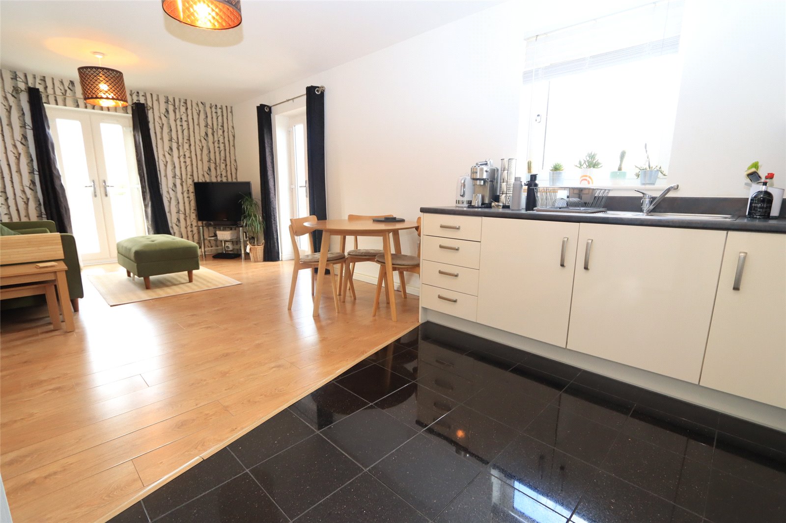 Step inside to discover a bright and welcoming entrance hall that effortlessly connects all areas of the home and has a large storage cupboard. The heart of the home is the bright kitchen/lounge/diner which is generously sized, designed for both relaxing and entertaining. It is bathed in natural light thanks to large windows and doors that open on to the balconies giving a real sense of openness. The contemporary kitchen is sleek and practical, with plenty of storage and worktop space.