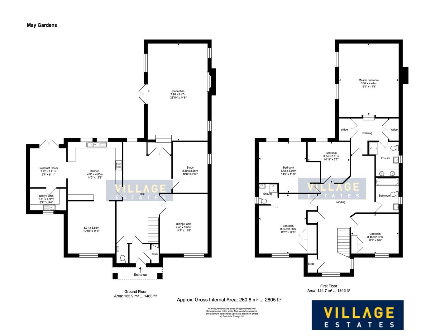 This beautiful home boasts flexible accommodation and includes a large and inviting entrance hall, good sized Kitchen/breakfast room, large and airy lounge, dining room, study, family room(off the kitchen), guest w/c and utility on the ground floor. The superb Master bedroom with en-suite bathroom and dressing room, Second large double bedroom with en-suite and three further double bedrooms along with the family bathroom make up the first floor.