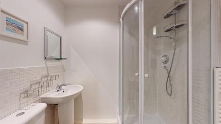 Entering this modern property to the front, via a communal entrance, the stairways lead to the private front door to the property itself. Inside there is a good sized hallway, with large storage cupboards, a kitchen/dining room opening into the living room beyond, a double bedroom and separate shower room. The property also benefits from electric heating and double glazing.