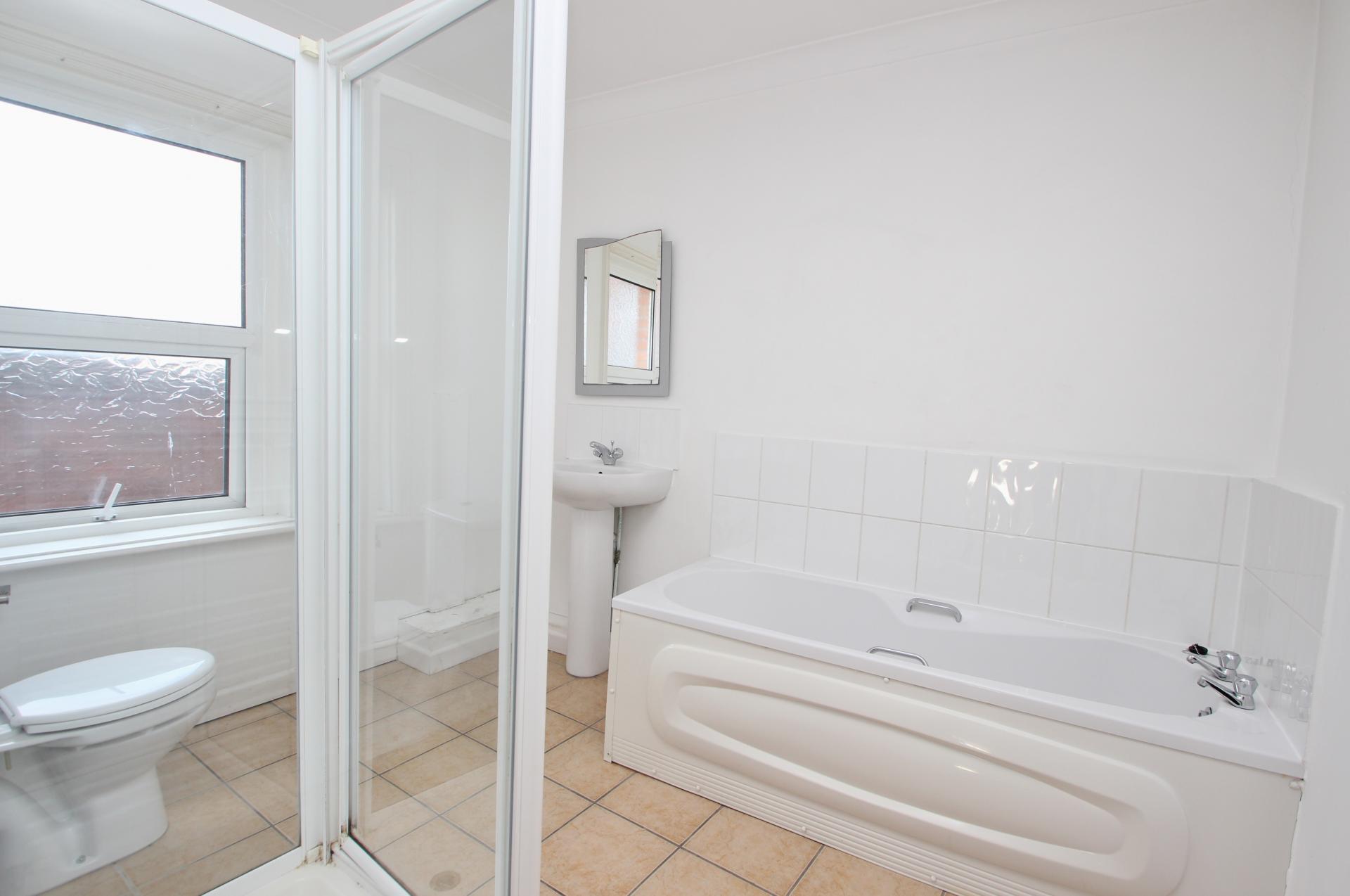 Smooth ceiling, double glazed window to side aspect, bath tub, shower cubical, hand basin, low flush WC.