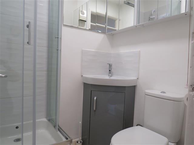 - Modern Living Space: First-floor studio with a modern kitchen area, combined bedroom/lounge, and shower room.