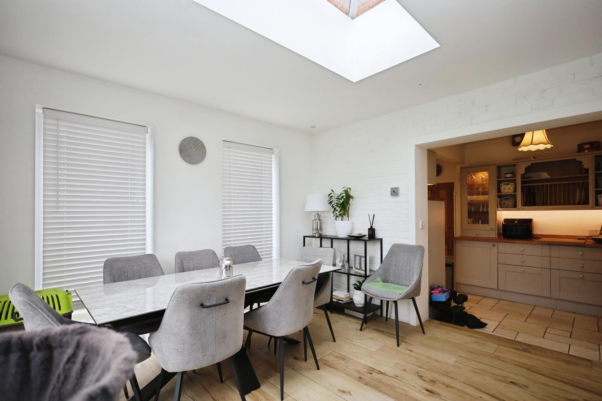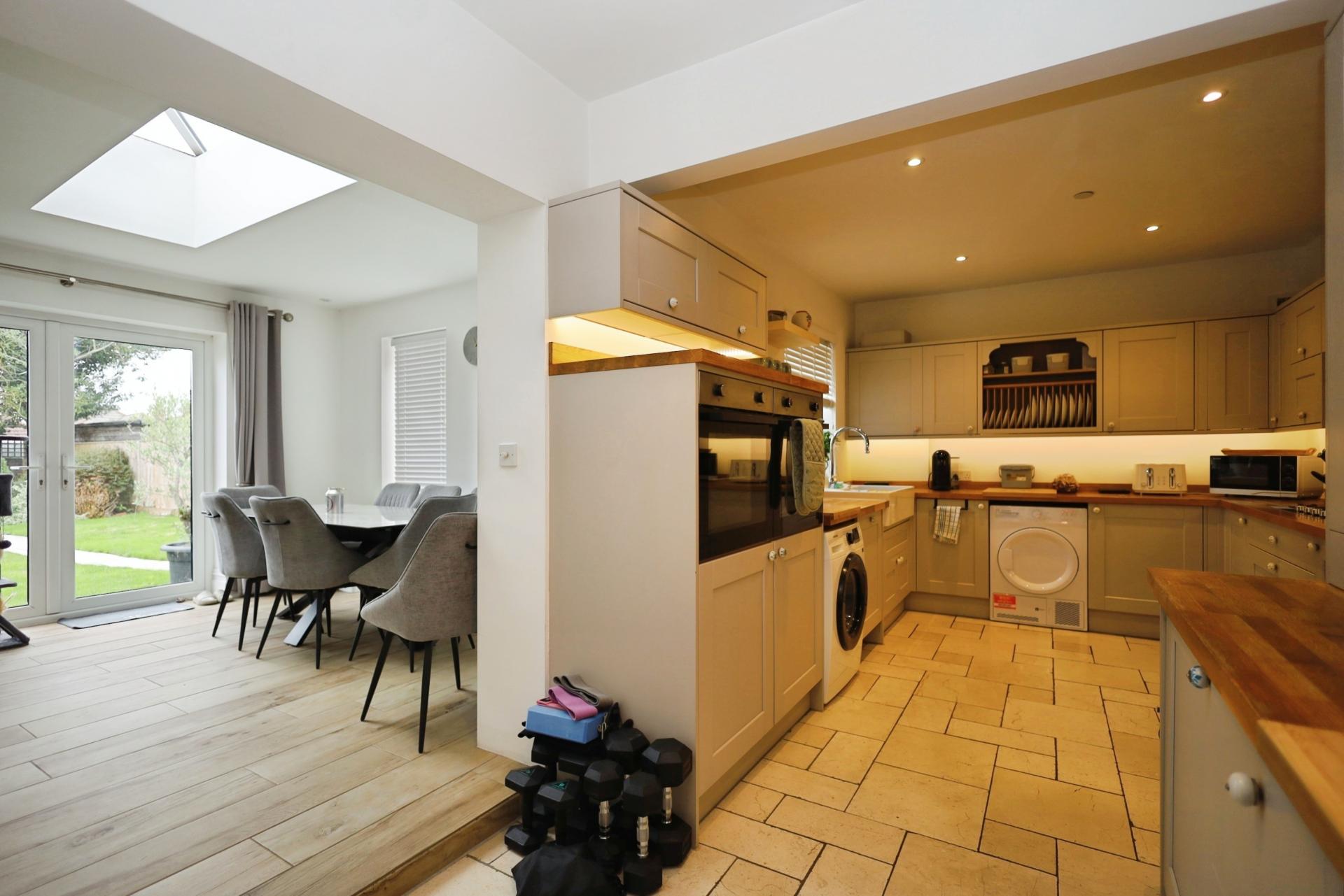 - Modern kitchen open to an extended dining room – ideal for entertaining