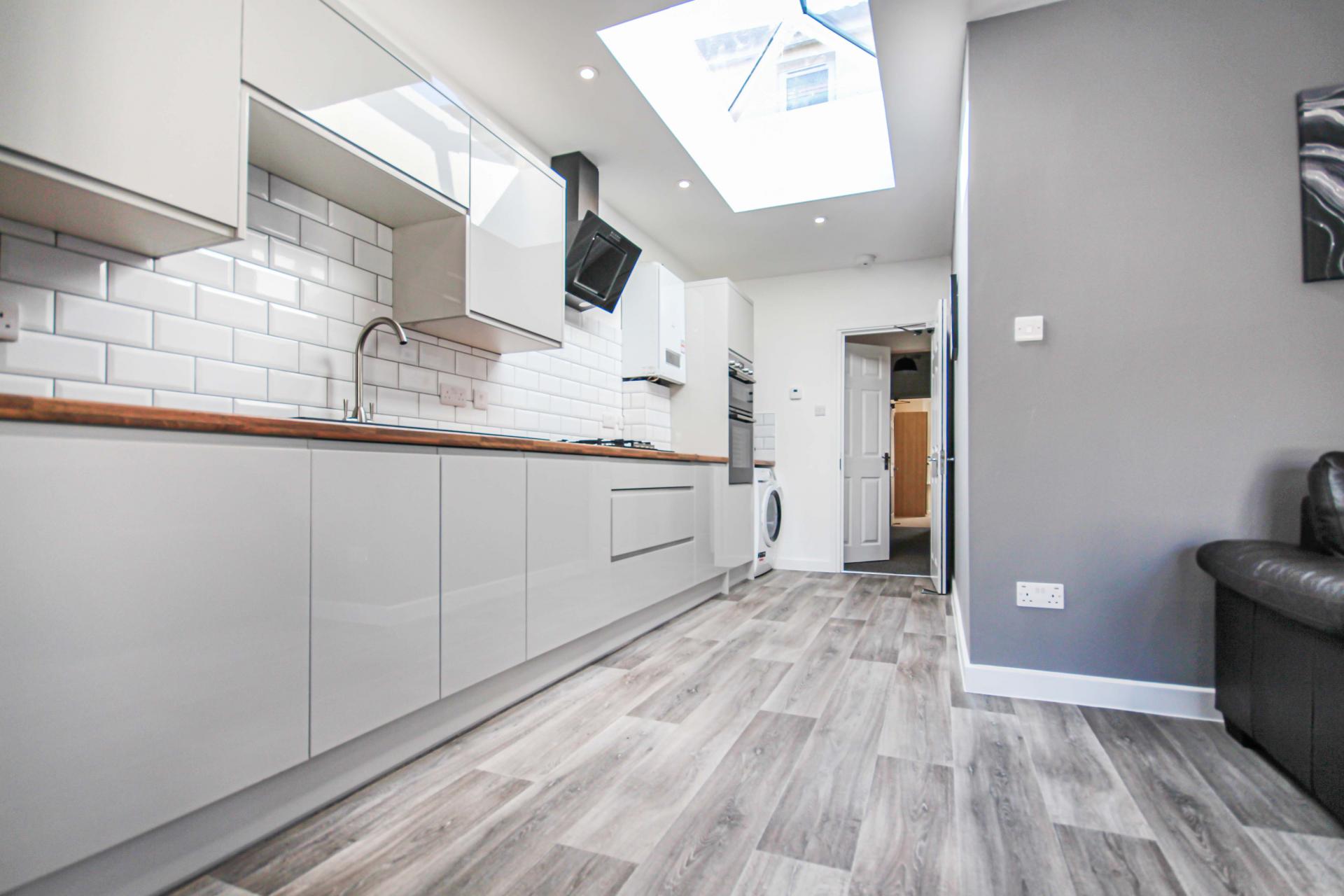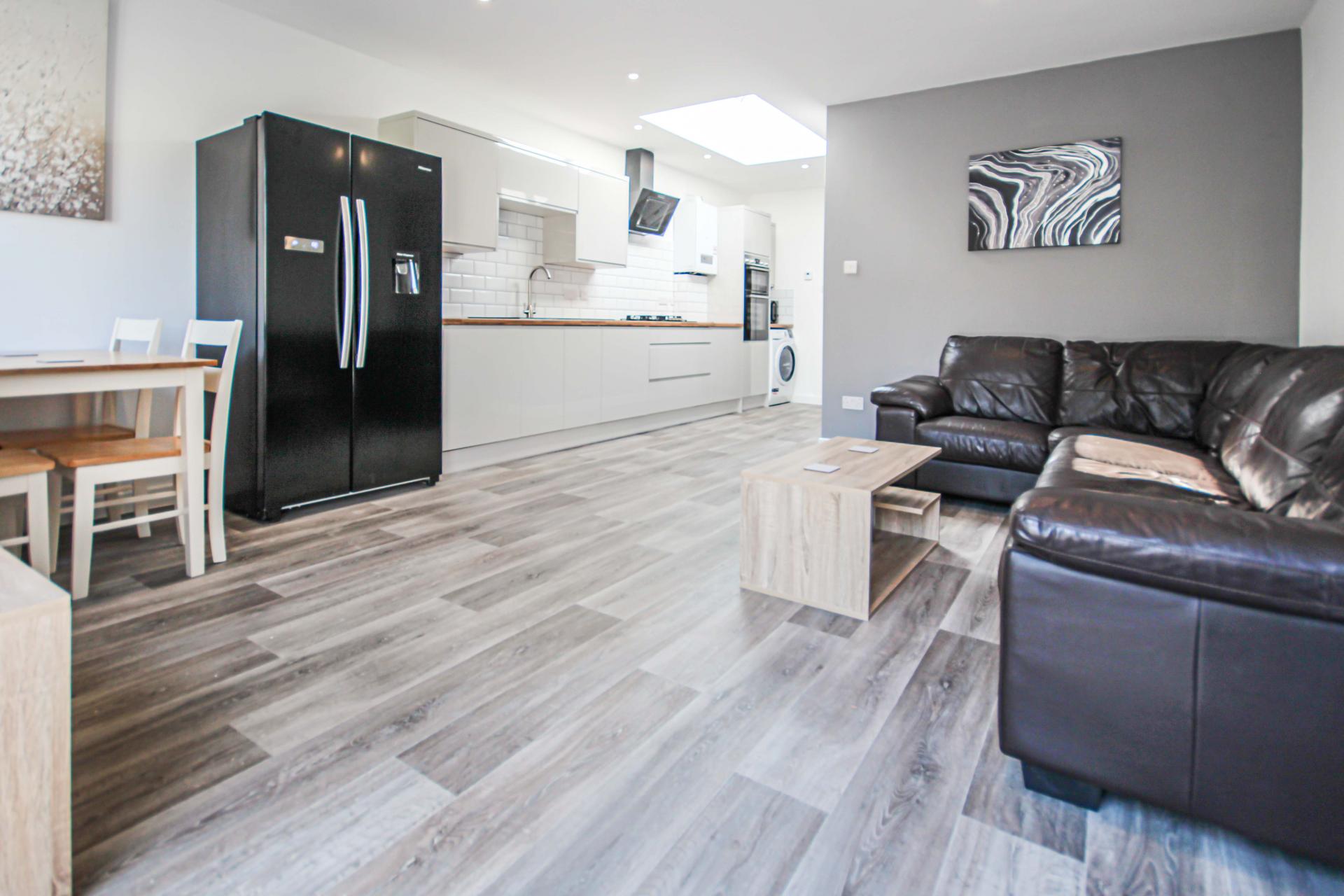 Located on Calvin Road, Winton, this beautifully renovated five double bedroom detached house offers stylish and spacious accommodation, perfect for students or professional sharers. The property features a modern open-plan lounge and kitchen with a striking skypod roof light, flooding the space with natural light. The contemporary kitchen includes a full range of appliances, including an American-style fridge/freezer, and opens onto a private rear garden, ideal for socialising and relaxing. All five bedrooms are generously sized doubles, each furnished to a high standard with quality fixtures and fittings. The property also benefits from two modern bathrooms, offering convenience for all residents. Situated just 1.0 mile from Bournemouth University and moments from Winton High Street, the property enjoys easy access to shops, cafes, bars, and transport links.