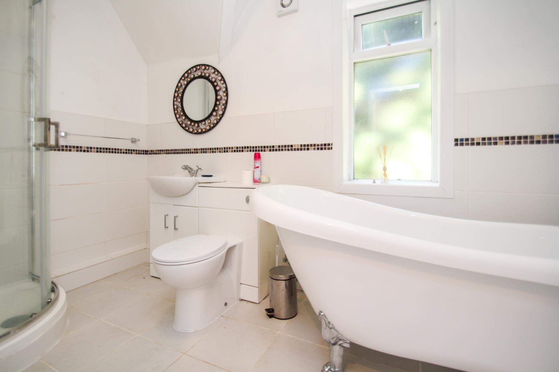 - Communal bathroom with roll top bath tub & separate shower cubicle