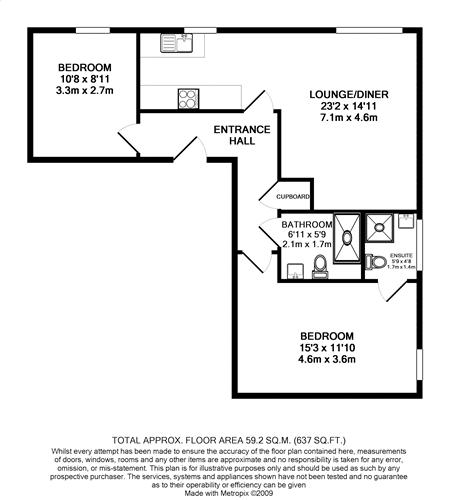 Two bedrooms apartment on the first floor, accessed by the communal entrance. The front door opens into the entrance hal...