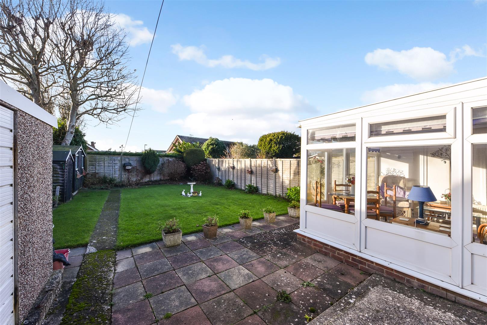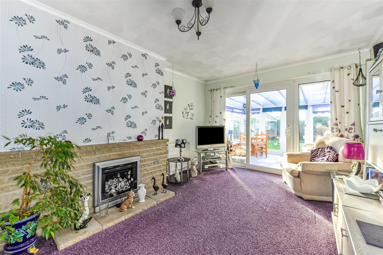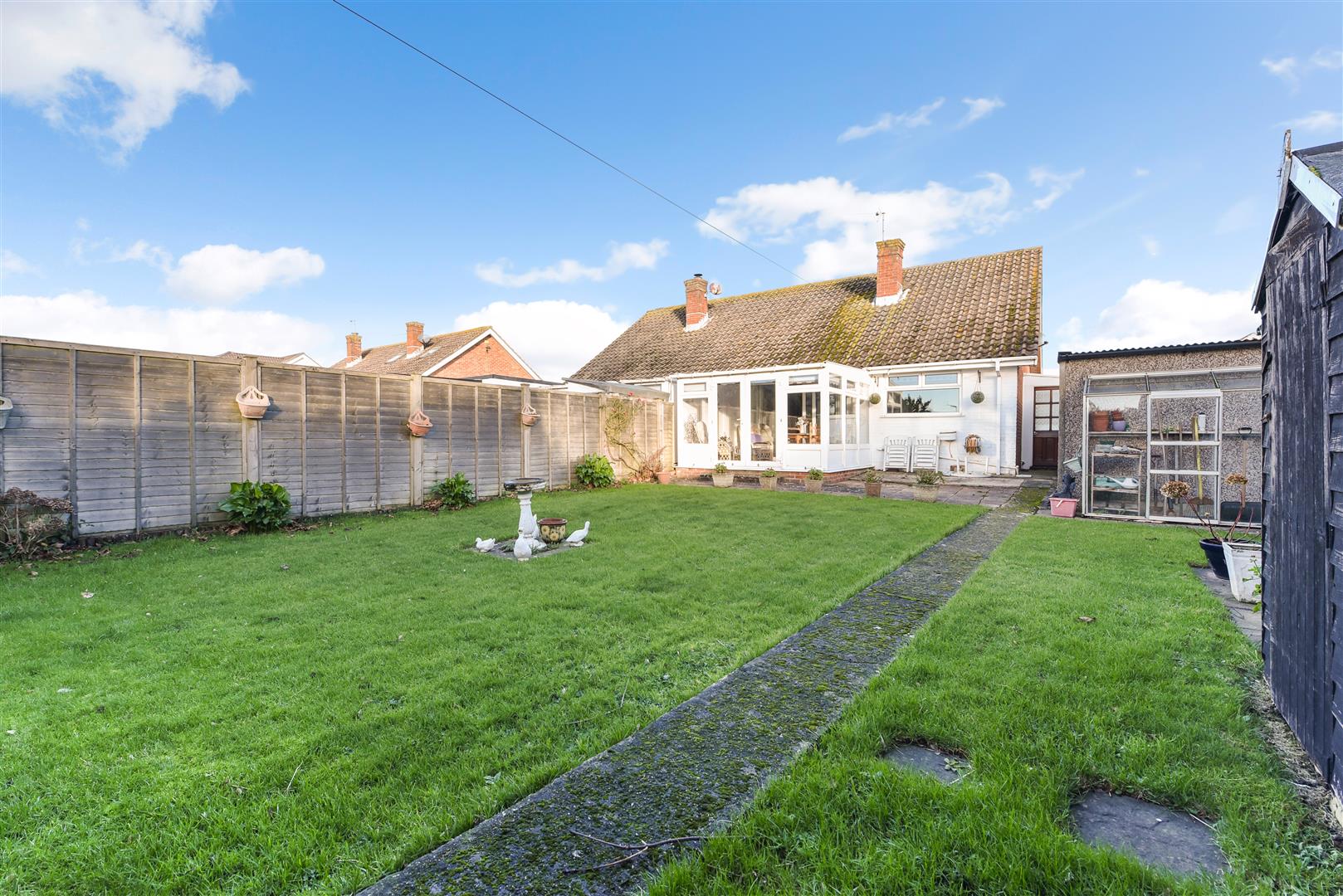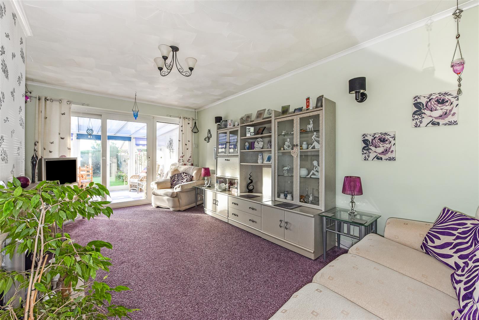 This lovely bungalow offers a generous living space area of 819 sq.ft., featuring two double bedrooms, modern shower room with a walk in shower, fitted kitchen with a range of base & eye level units and plumbing for washing machine & slimline dishwasher and a conservatory adjoining the sitting room overlooking the south facing rear garden. Outside, the front and rear gardens are mainly laid to lawn and benefit from driveway parking for several cars, a single garage and a good sized shed as well.