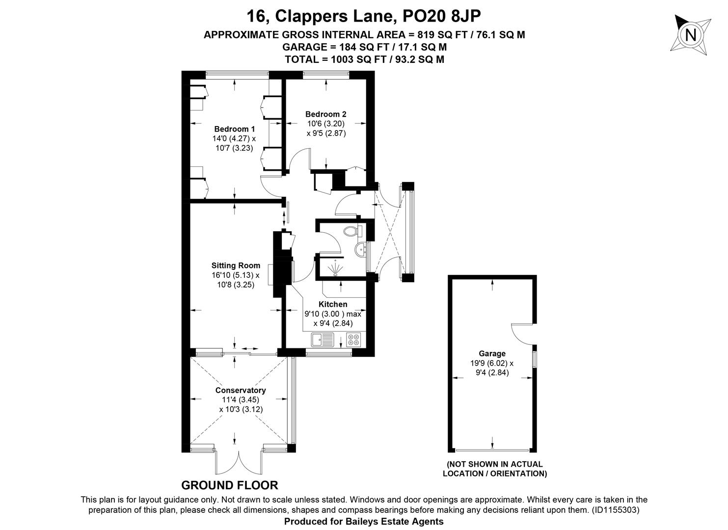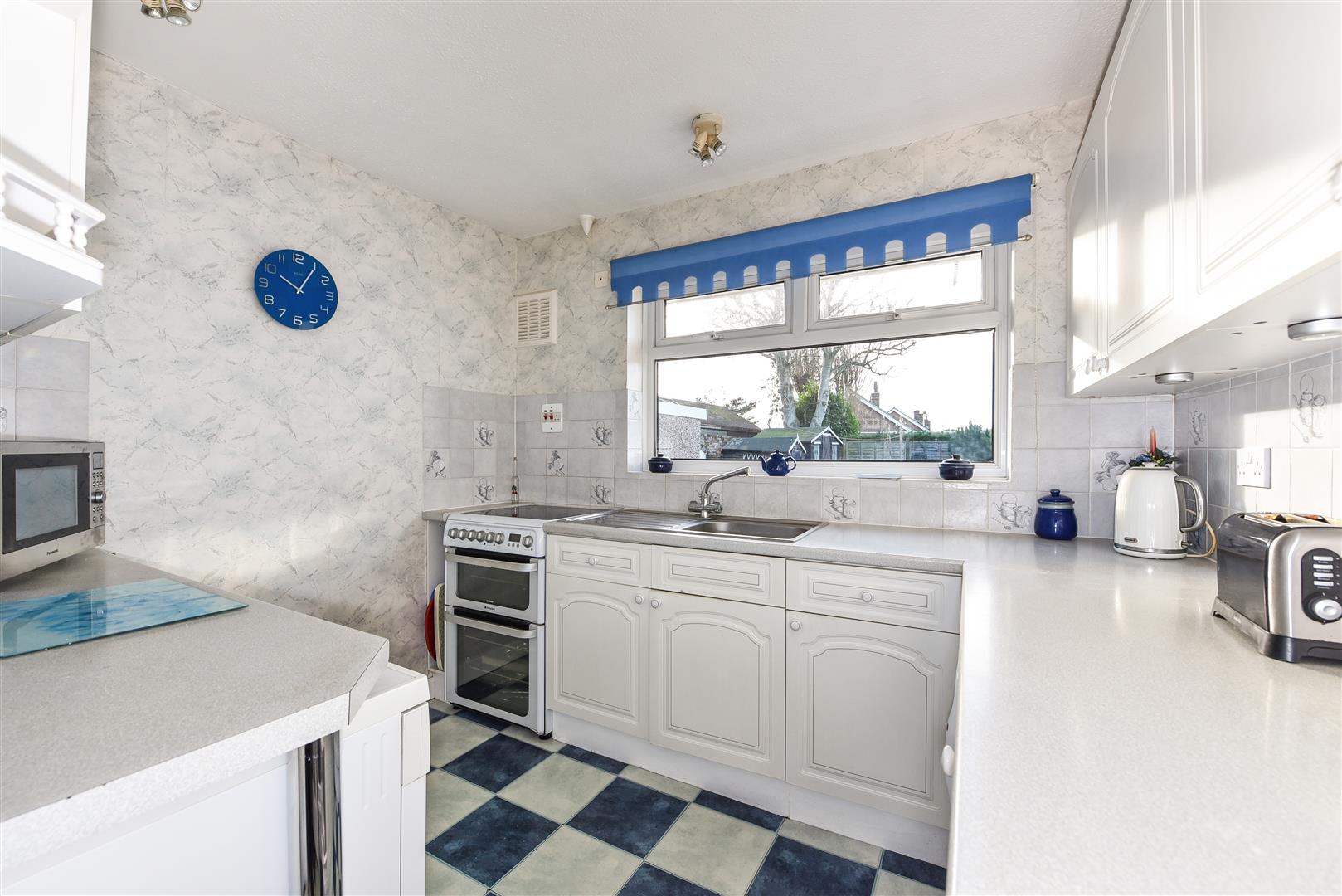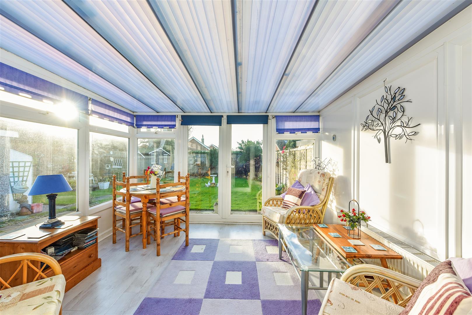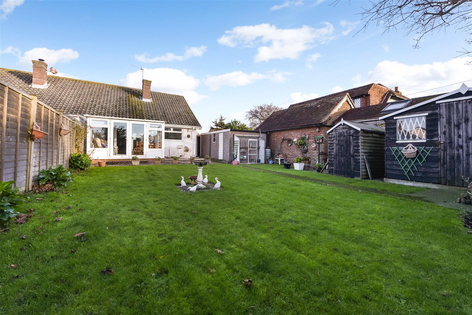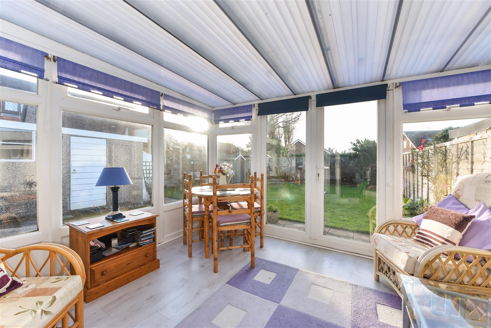 This lovely bungalow offers a generous living space area of 819 sq.ft., featuring two double bedrooms, modern shower room with a walk in shower, fitted kitchen with a range of base & eye level units and plumbing for washing machine & slimline dishwasher and a conservatory adjoining the sitting room overlooking the south facing rear garden. Outside, the front and rear gardens are mainly laid to lawn and benefit from driveway parking for several cars, a single garage and a good sized shed as well.