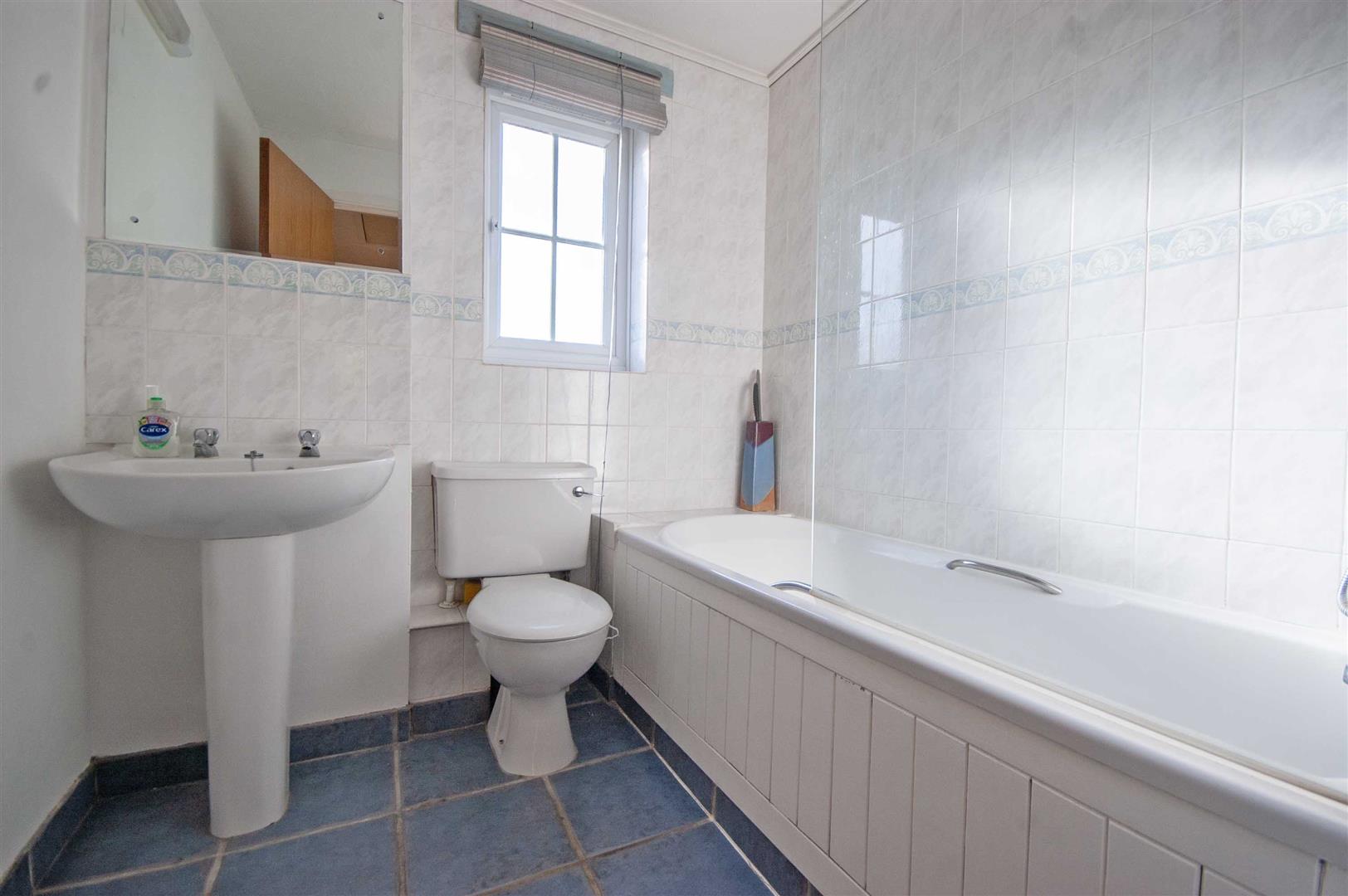 Bathroom: - 1.96m x 1.91m (6'5" x 6'3") - Obscure double glazed window to front, panel bath with shower mixer tap, pedestal hand wash basin, low level W/C, radiator, tiled walls and flooring.