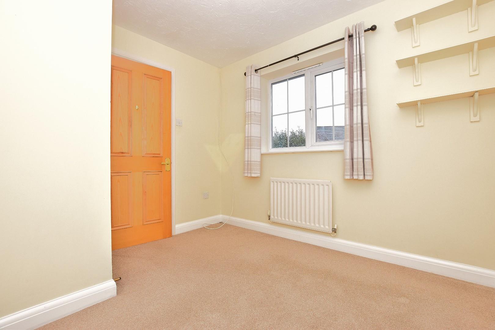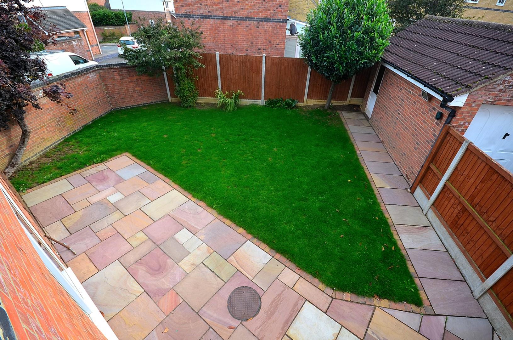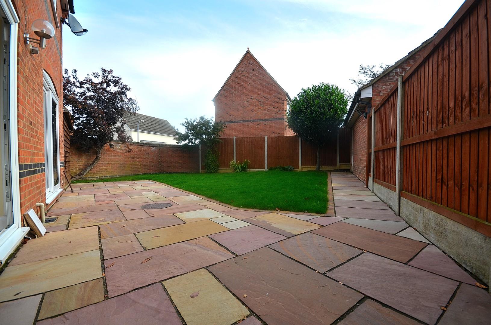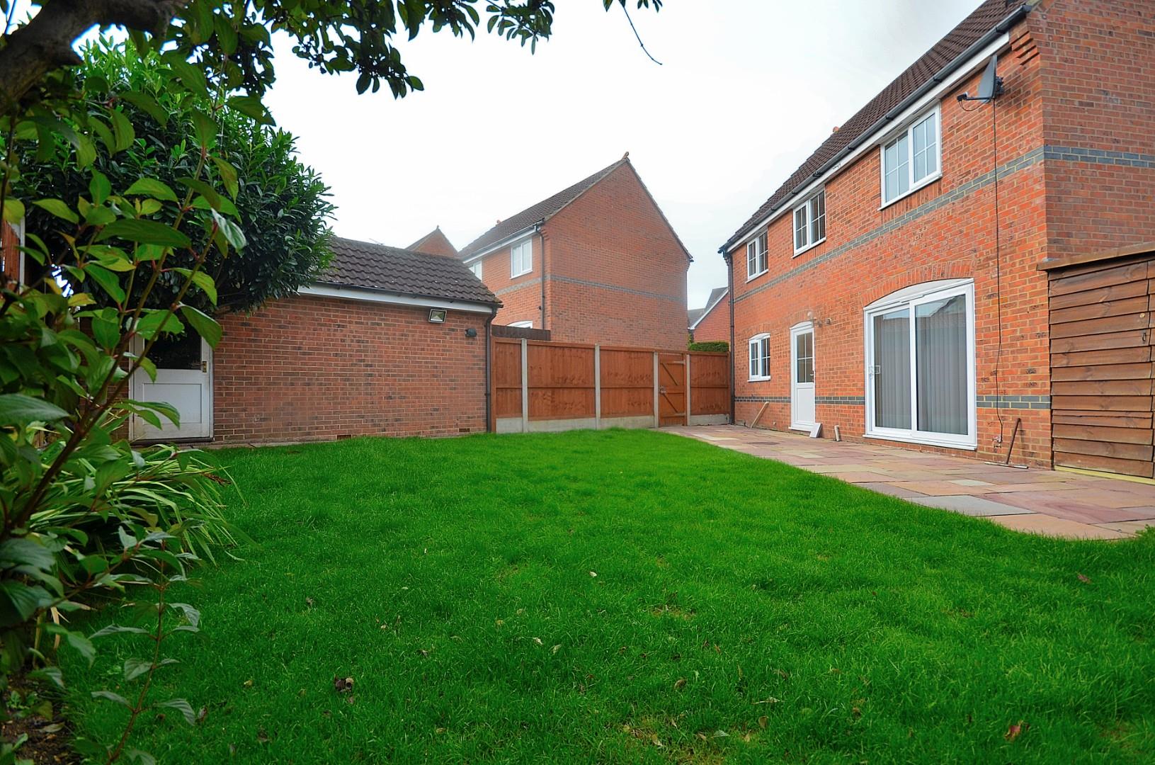 Exterior - Enclosed rear garden with a single garage and driveway parking for two vehicles.