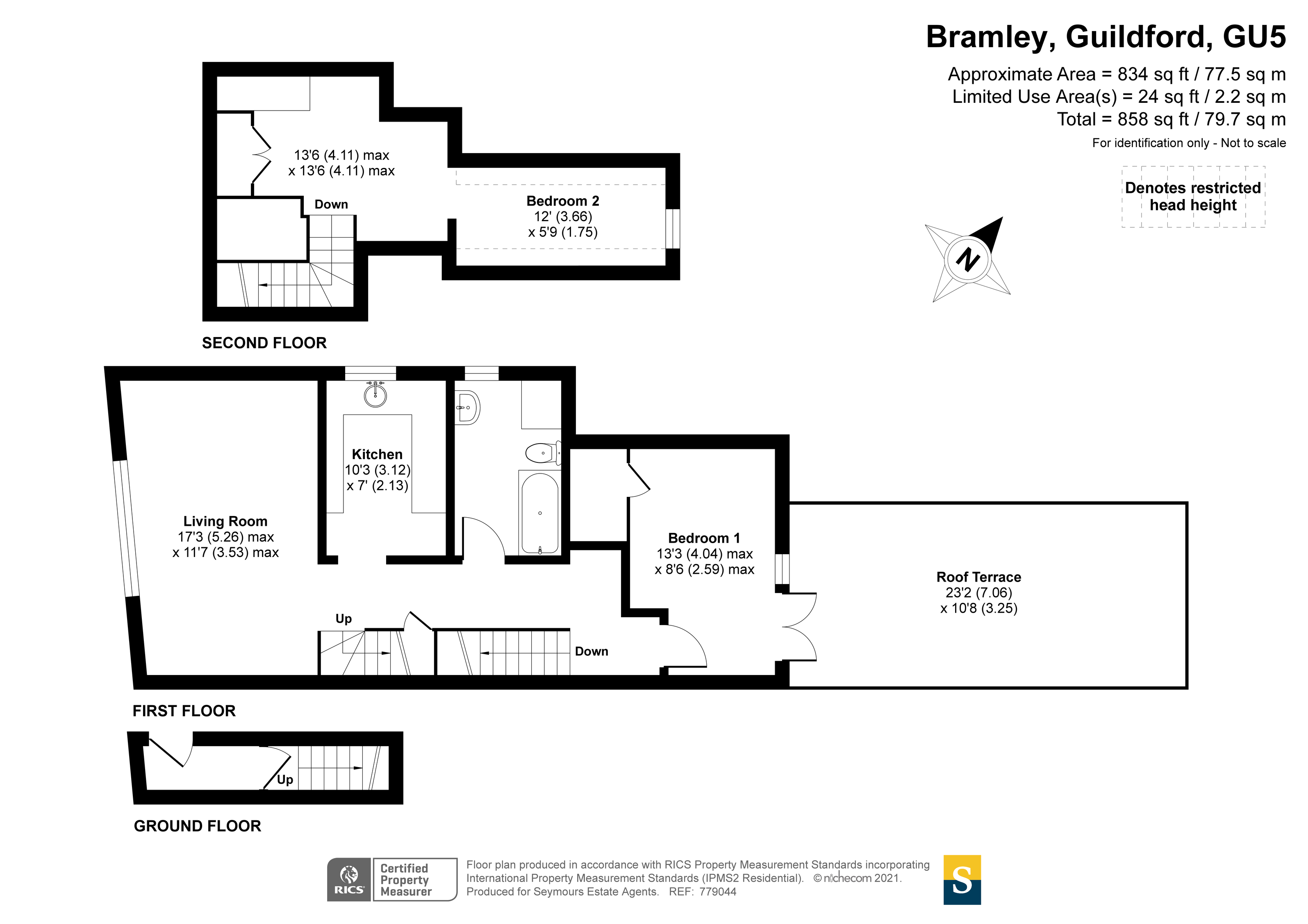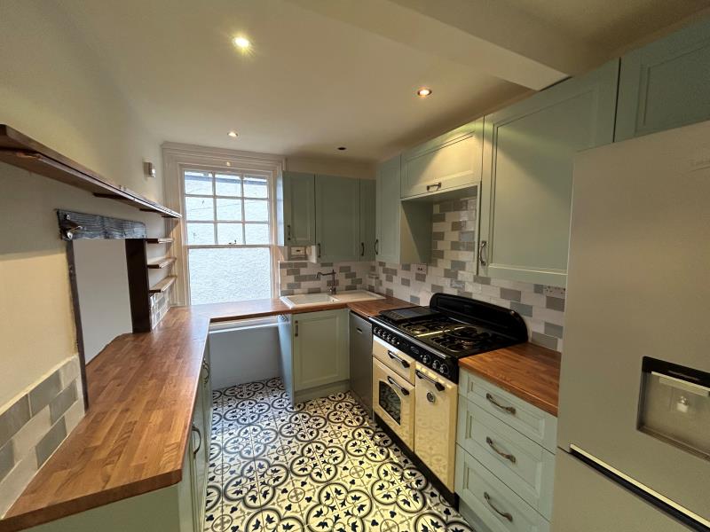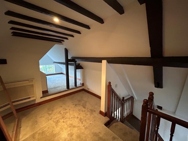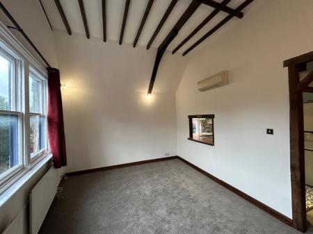 Unfurnished. A most unique and characterful two bedroom maisonette set in the heart of Bramley Village on the outskirts of Guildford Town Centre. The property is set over 3 floors and has its own front door with stairs leading up to the first floor. There is a generous reception room with high ceilings and wooden beams. A modern and well equipped kitchen together with a modern and contemporary bathroom. The main bedroom is on the first floor with french doors leading onto a generous decked area suitable or al fresco dining. Stairs lead up to the third floor and the second bedroom with ample storage and light up wardrobes. On street parking. Close to local amenities, transport links, Guildford Town centre, A3 and M25. Recently fitted carpets and recently redecorated.