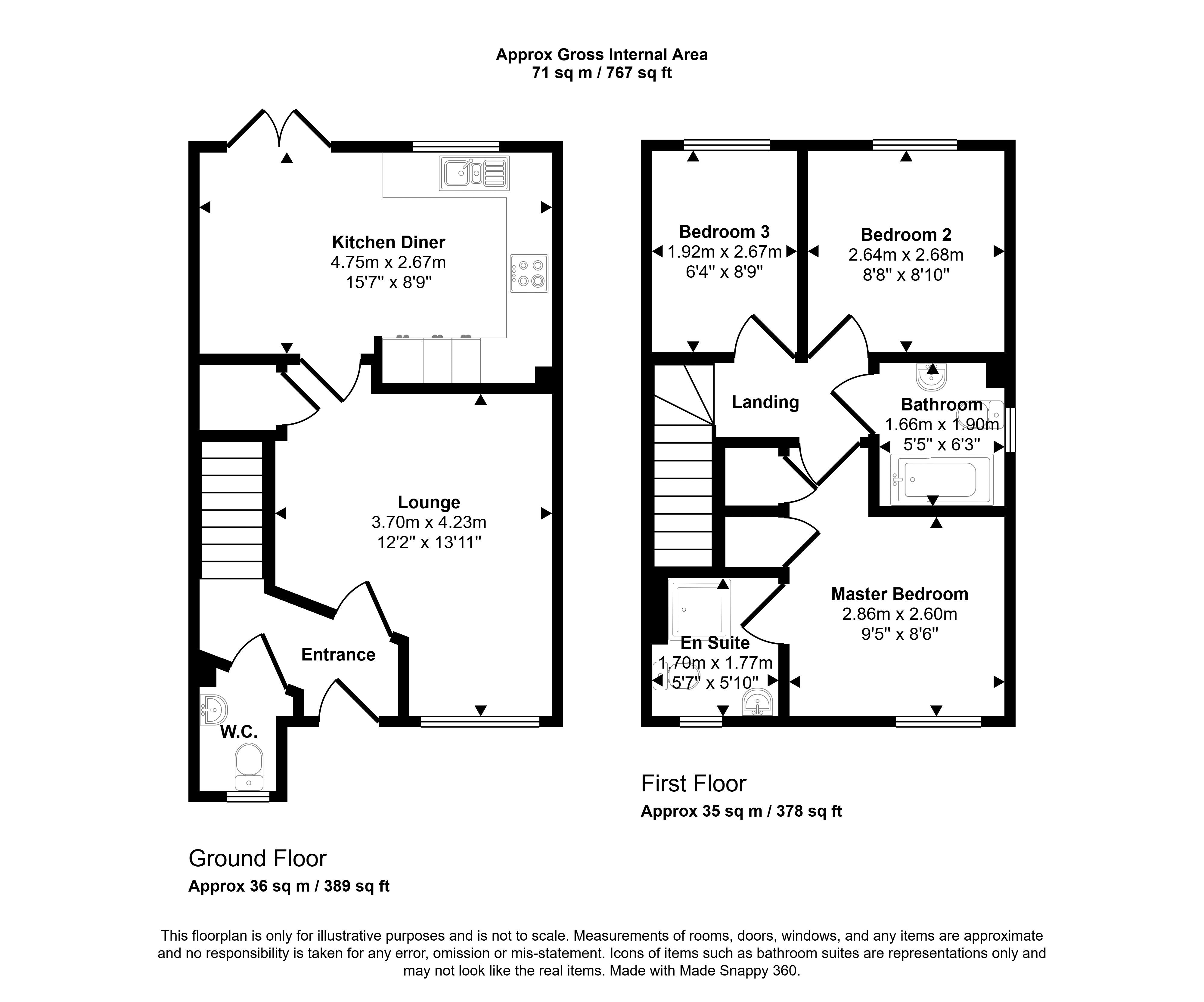 - Kitchen/diner with uPVC double-glazed window to rear and French doors to garden