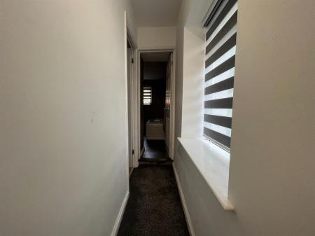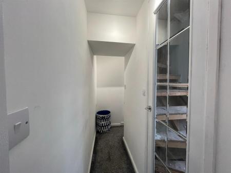 Fitted carpet, one radiator, electricity meter, stairs to first floor, door to: