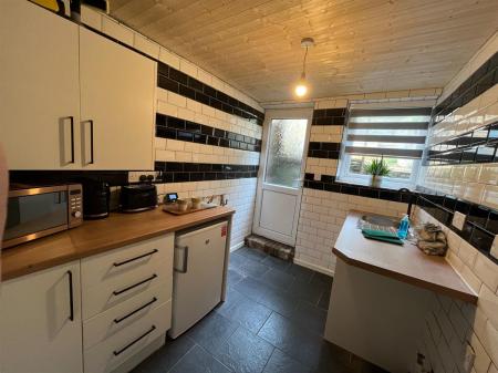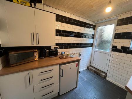 Various wall and base units, free standing electric cooker, single bowl sink and drainer, plumbing for washing machine, space for under counter fridge/freezer, one radiator, various power points, tiled flooring, extractor fan and door to rear garden.