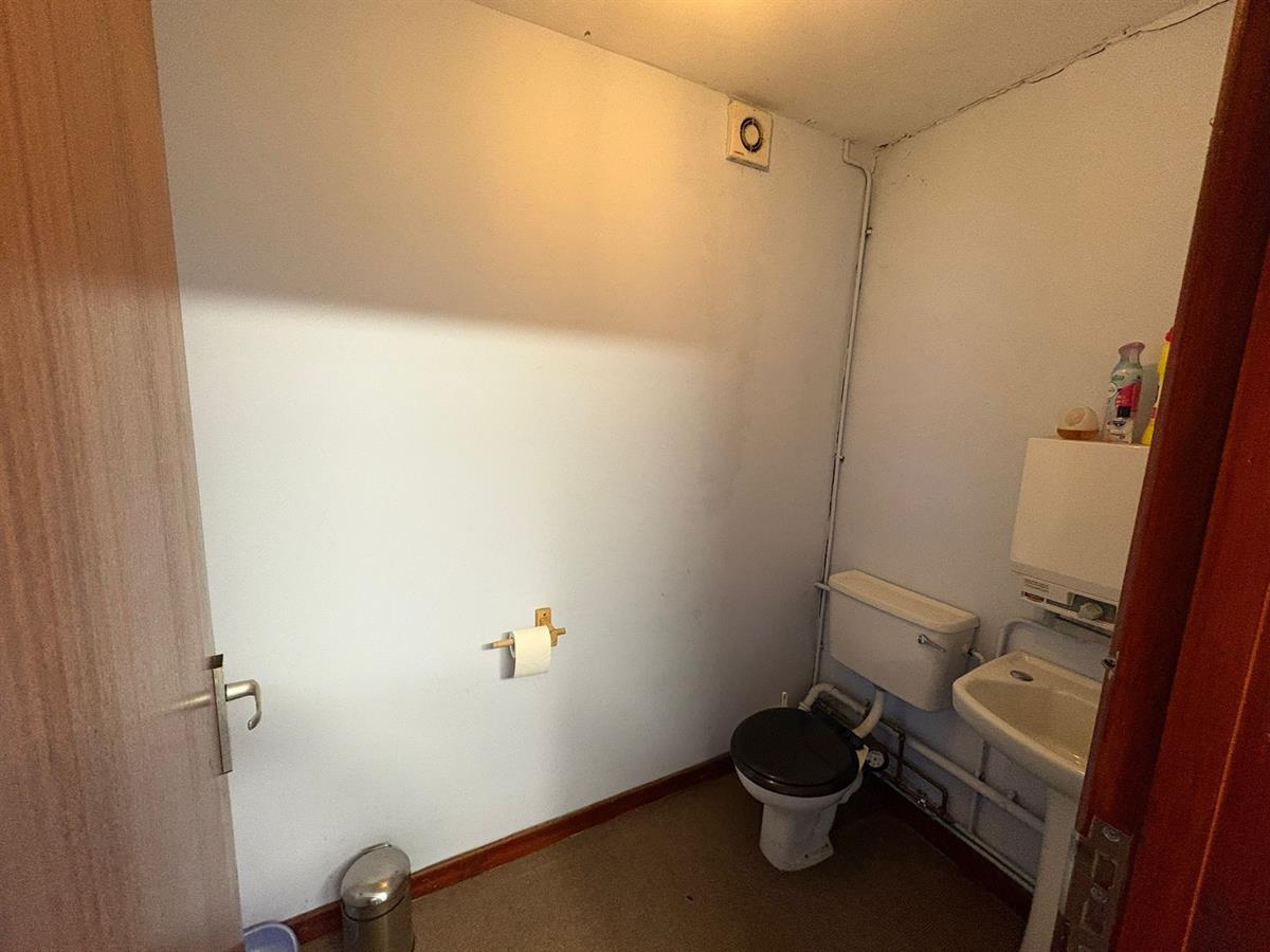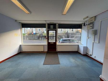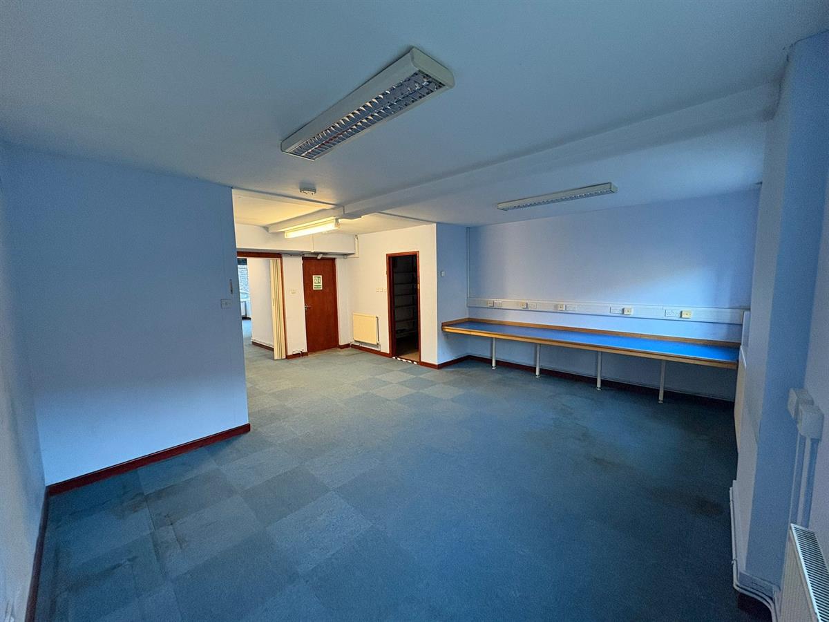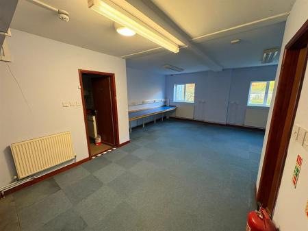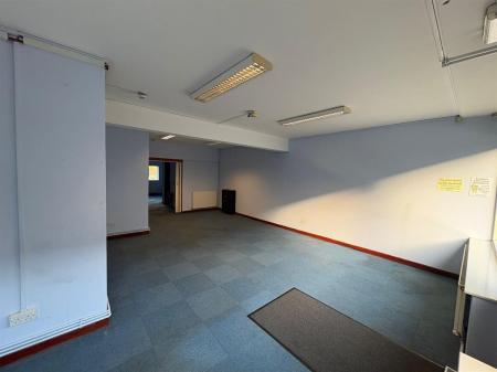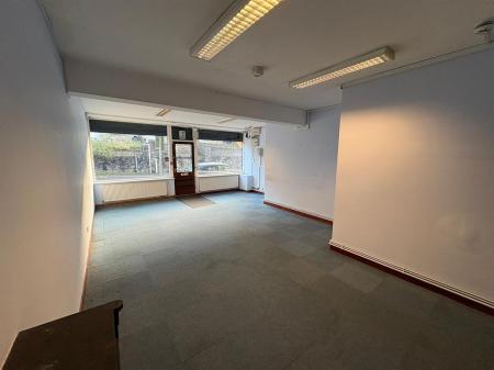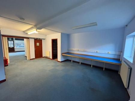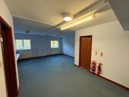Large workspace area to the rear of the property, Two windows overlooking rear, fire door leading to flats to the side, brown door leading to WC, brown door leading to storage room, Seven visible dual plug sockets, three ceiling lights, two white radiators.