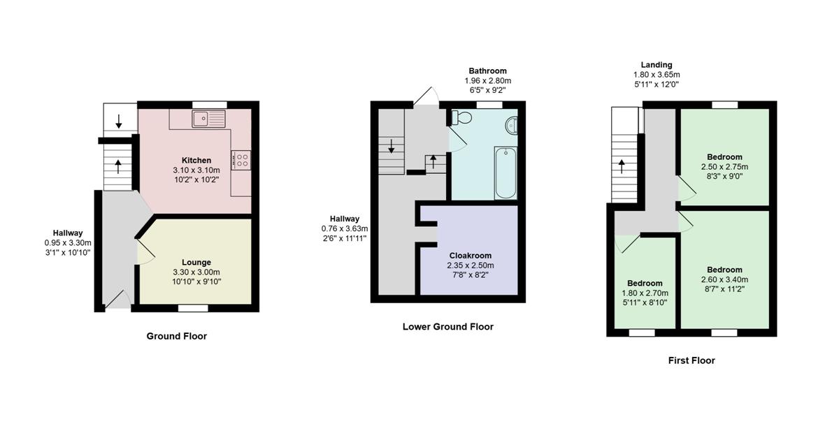 Bedroom 3 w: 1.78m x l: 2.49m x h: 2.73m (w: 5' 10" x l: 8' 2" x h: 8' 11")