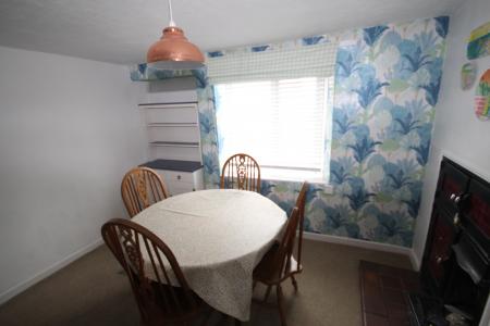 12’3” x 11’10” Deep inglenook fireplace with inset tiled fireplace & open grate.
