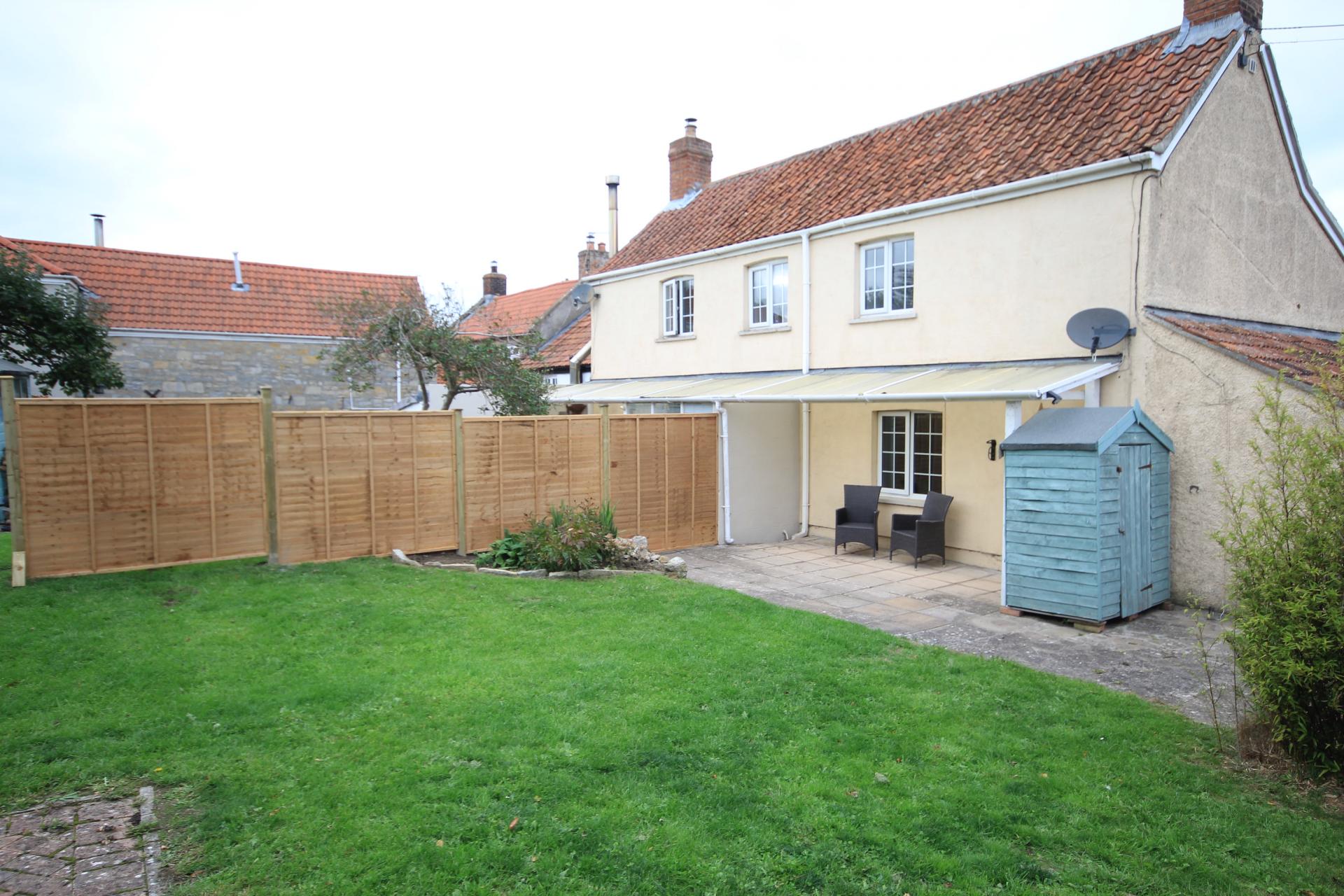 To the side of the property its laid to stone chippings, gate leads to rear south facing garden. Covered veranda, good sized lawn. Brick paved area for 1 car.