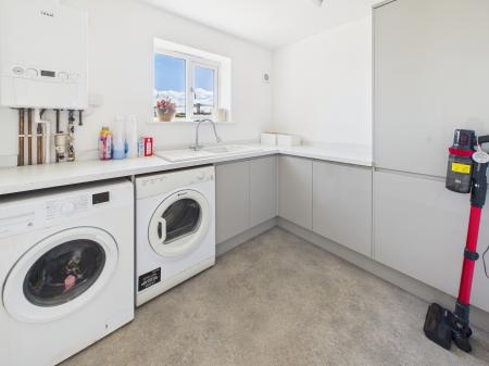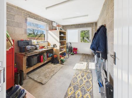9’0” x 7’2” Single drainer sink unit with plumbing for washing machine and space for tumble dryer under. Floor unit. Storage cupboard. Radiator. Ideal gas fired boiler providing central heating and hot water. Door to Workshop.