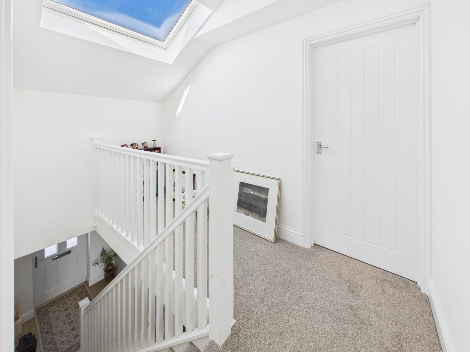 16’7” x 17’0” plus recessed es below dual aspect Velux windows. Radiator. Door to: