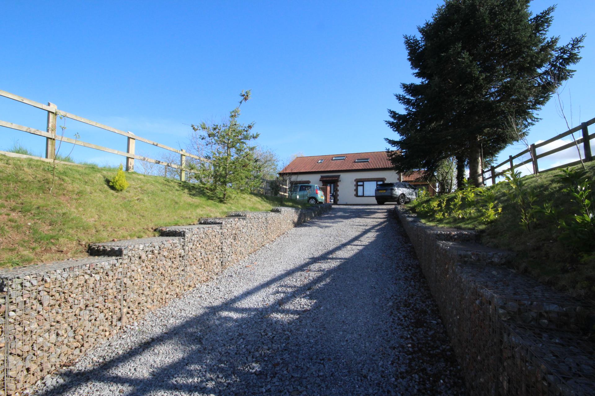 The property is approached via a five bar gate and a long stoned driveway to the front of which is a parking space and grassed banks. The driveway itself is bordered by grassed banks. Parking space for 3-4 cars.