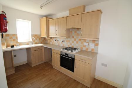 11’9’’x 6’9’’. Fitted with beech kitchen units and drawers, laminate worktops with inset sink. Integrated electric oven, gas hob and oven extractor fan. Space for washing machine and fridge freezer. Combi boiler.