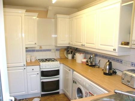 10’1” x 7’1”. Single drainer stainless steel sink unit inset into work surface. Re-equipped with good range of white floor and wall mounted cupboards units with rolled edge worksurfaces and ceramic tiled surrounds. Plumbing for washing machine and dishwasher. Integrated tall fridge/freezer. Gas cooker space. Single radiator.