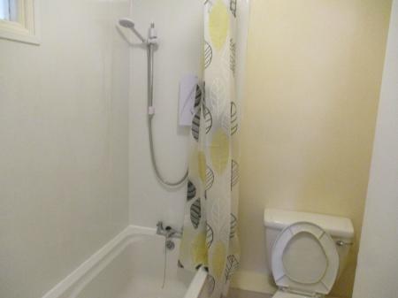 Fitted with a white suite comprising WC, pedestal wash hand basin and panel bath.