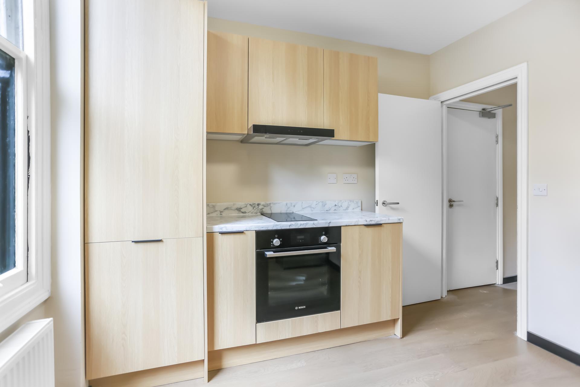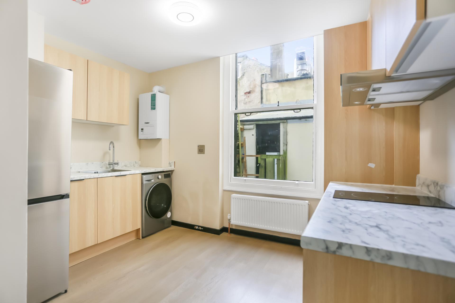 This newly refurbished ground-floor studio flat offers modern living with a thoughtful design. The property features a double bedroom area complete with a fitted bed, new mattress, and built-in wardrobes for ample storage. The open-plan, newly fitted kitchen is equipped with a two-ring electric hob, electric oven, washer/dryer, and fridge/freezer, making it a practical and stylish space for everyday living.