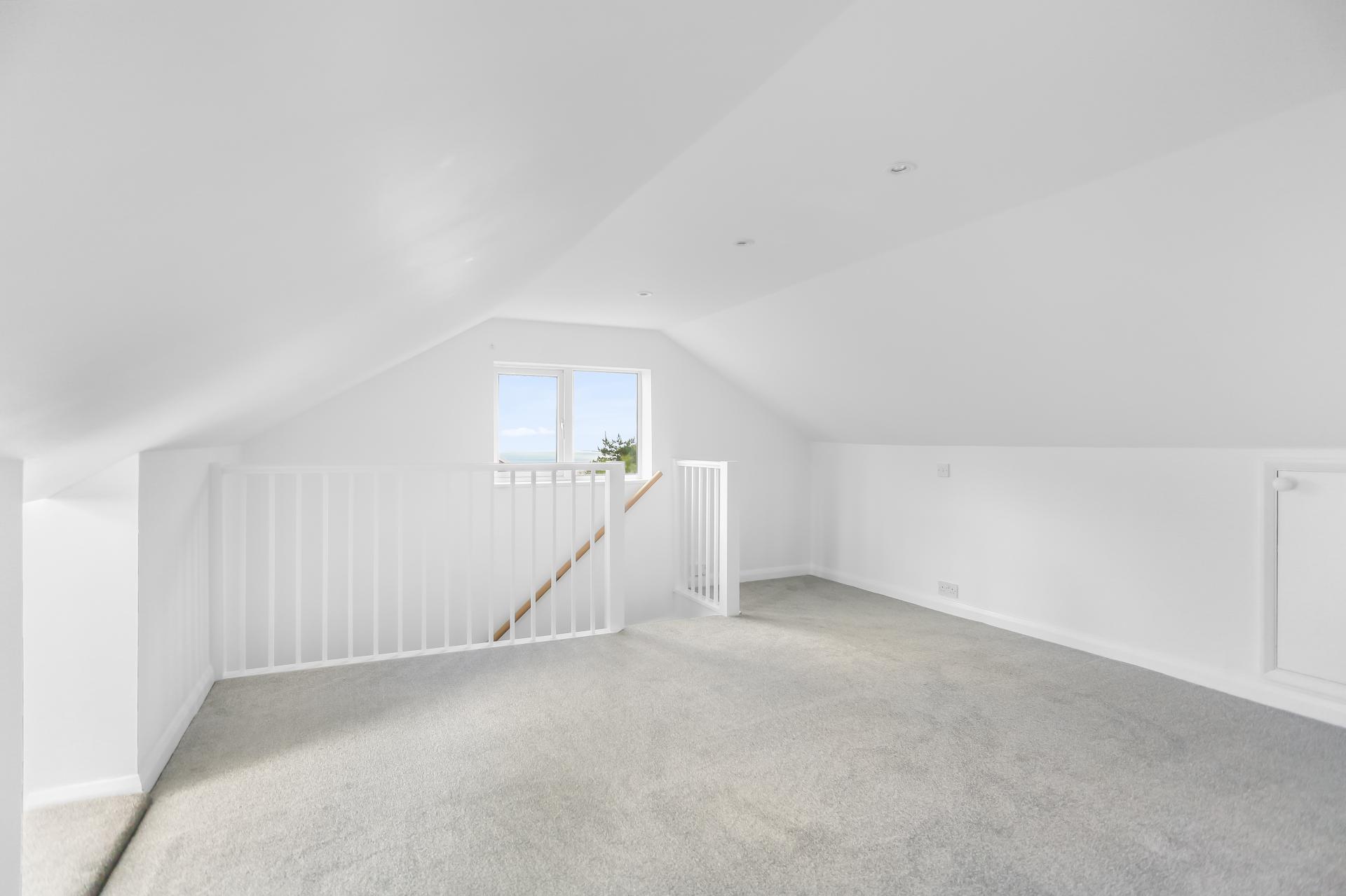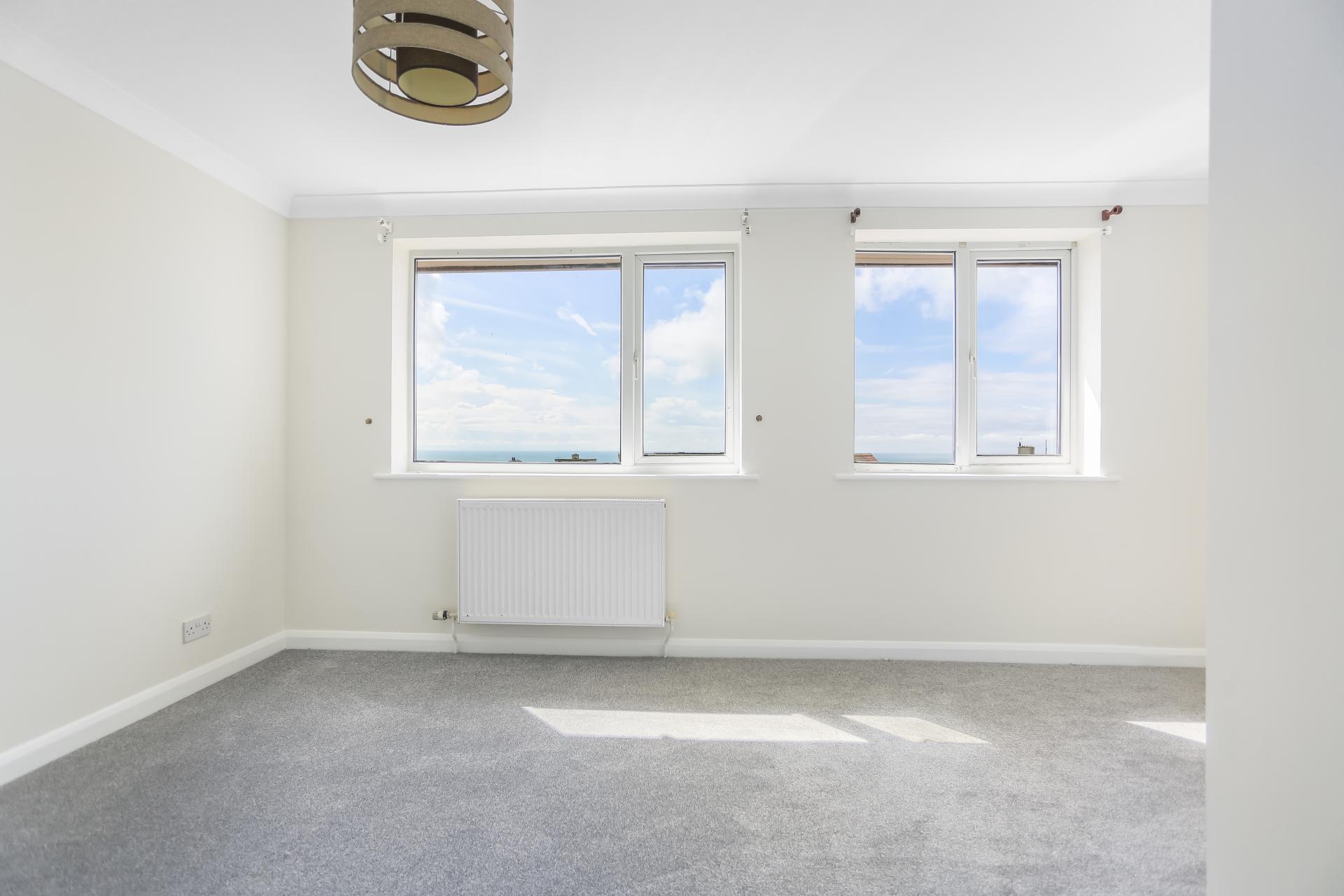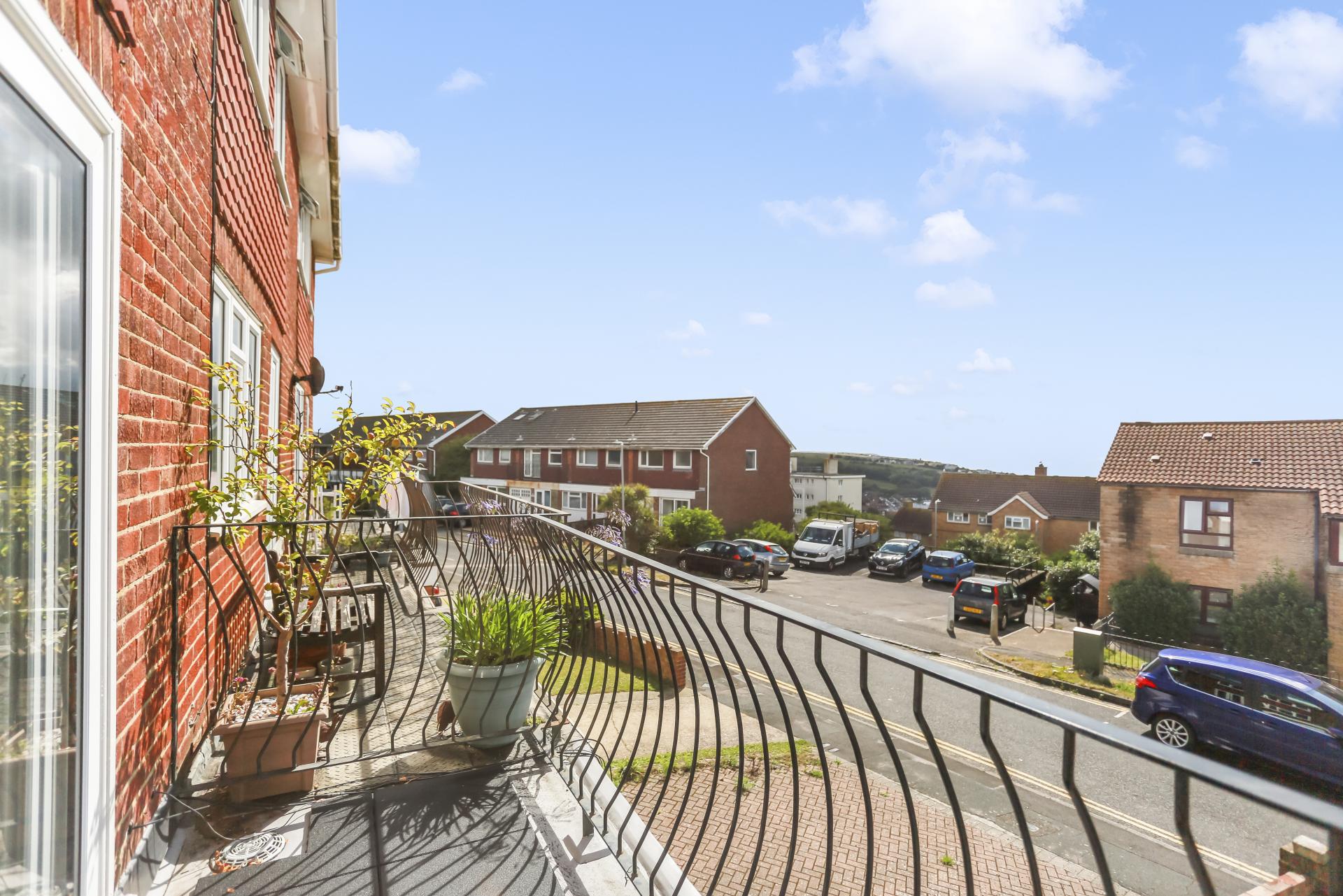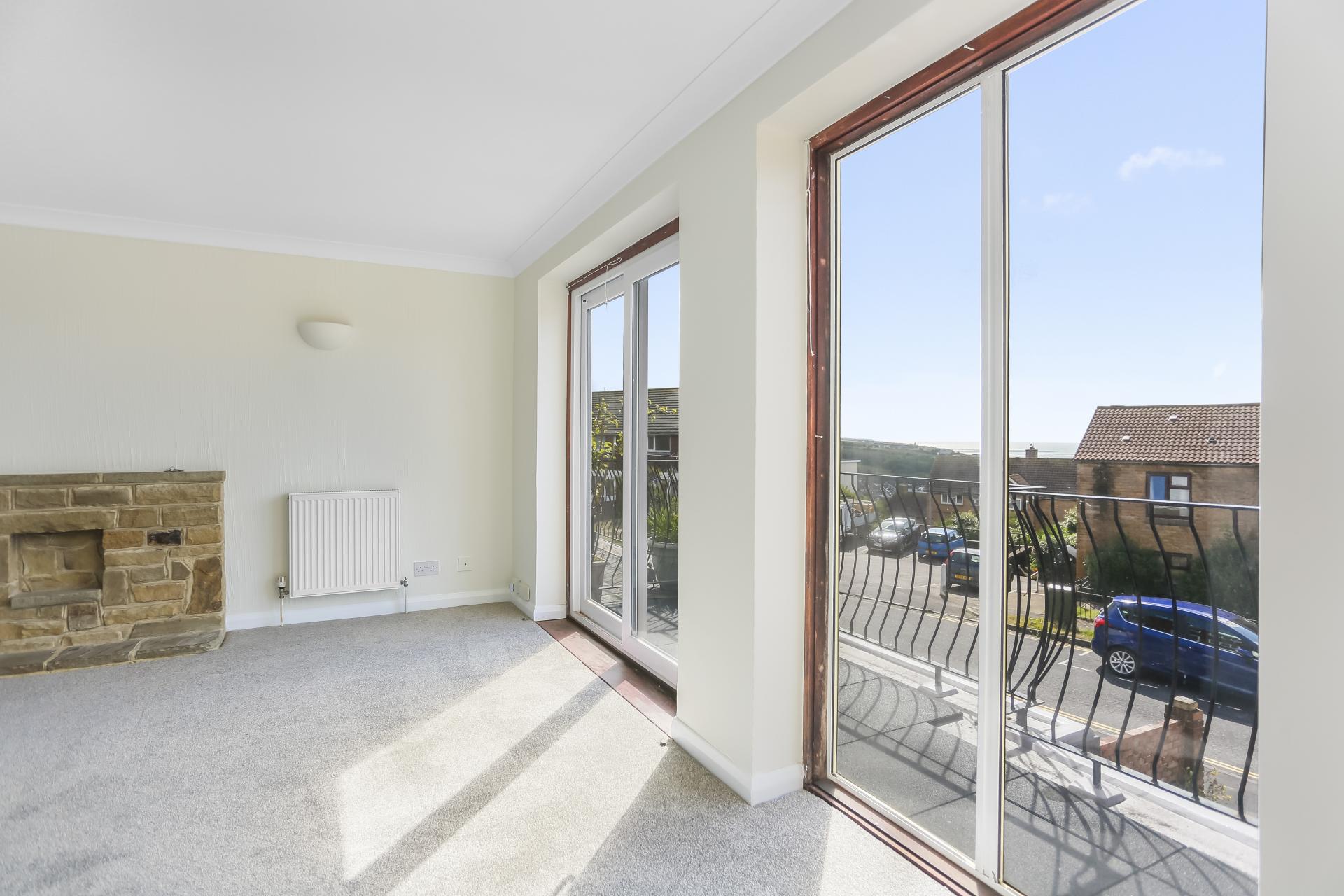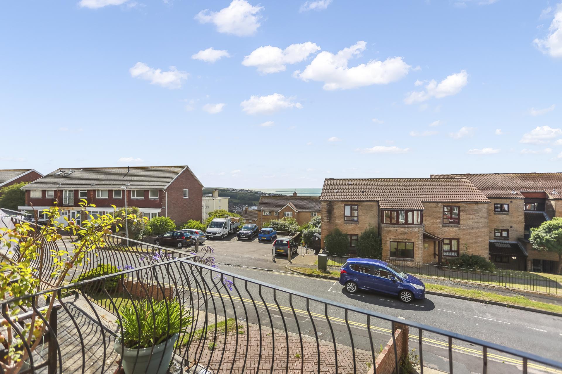 A south-facing balcony enjoys far-reaching sea views and afternoon sun, while an integral garage and private driveway provide parking for two vehicles.
