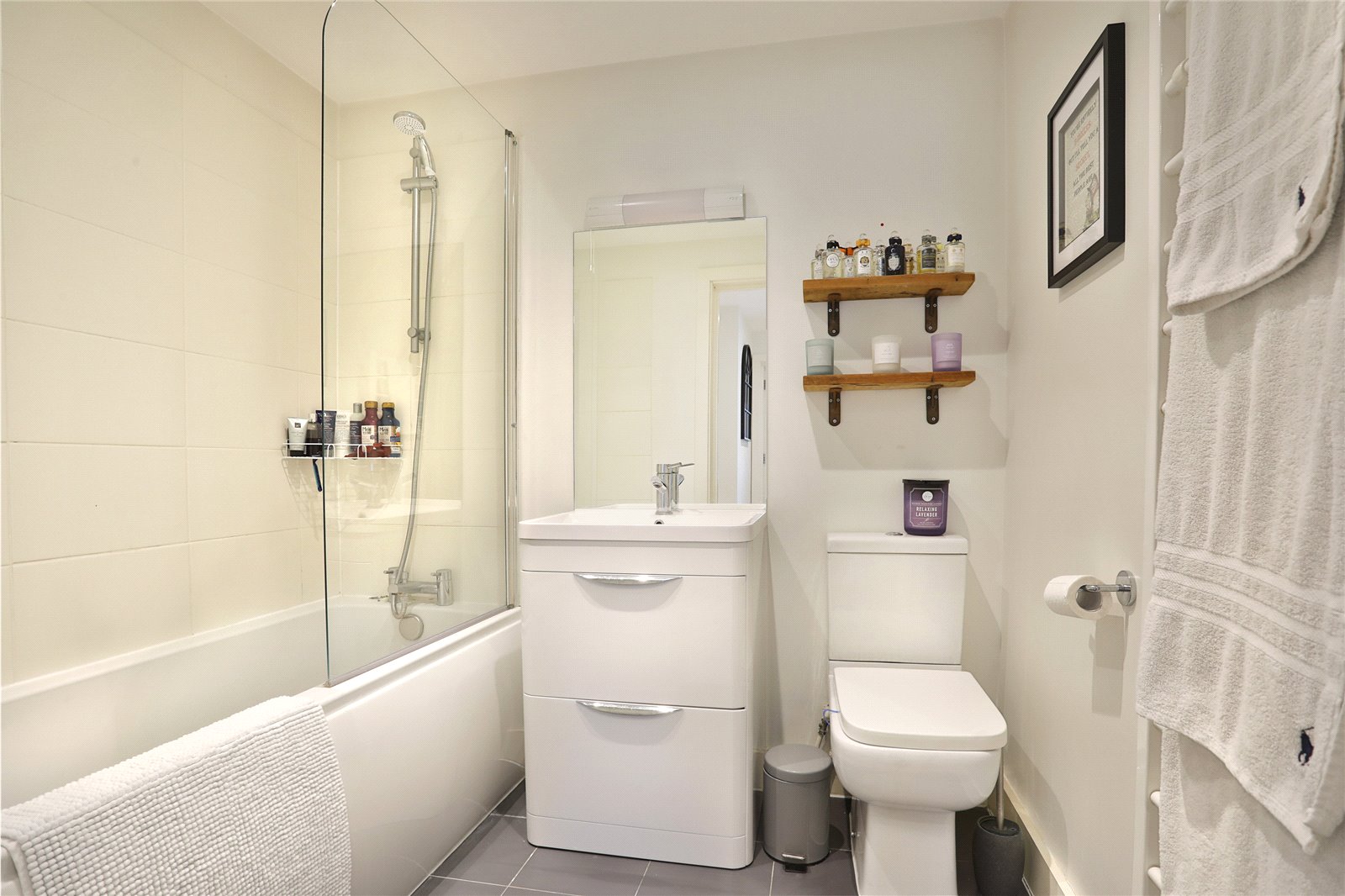 The bathroom features high-quality fittings and a clean, modern aesthetic. Neutral décor, double glazing, and quality flooring throughout enhance the sense of space and light. There is a roof terrace to enjoy as a form of outside space.
