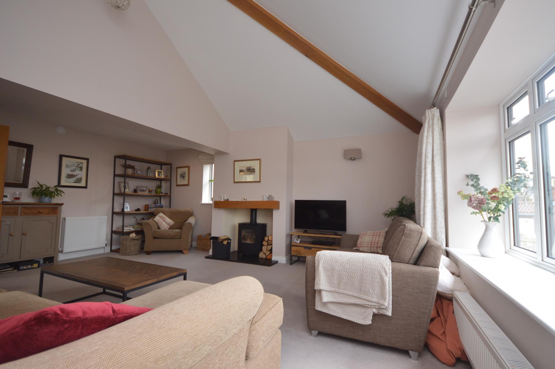 Once inside the entrance hall, where there is room for coats and shoes, you ascend the stairs to the first floor living accommodation. Here you will find a bright and spacious living room with high ceiling, a study, utility room and cloakroom. The impressive kitchen/diner is equipped with a Rangemaster cooker, integrated appliances and breakfast bar. The dining area has large patio doors looking out onto the gardens and countryside beyond.