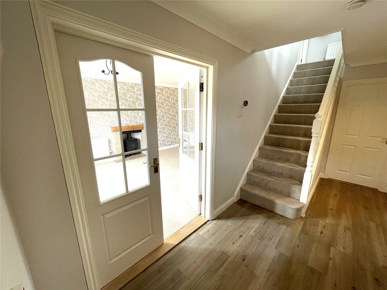 At the front of the property a large, gravelled driveway provides with ample parking for numerous vehicles, inclusive of an electric car charging unit and a double garage.