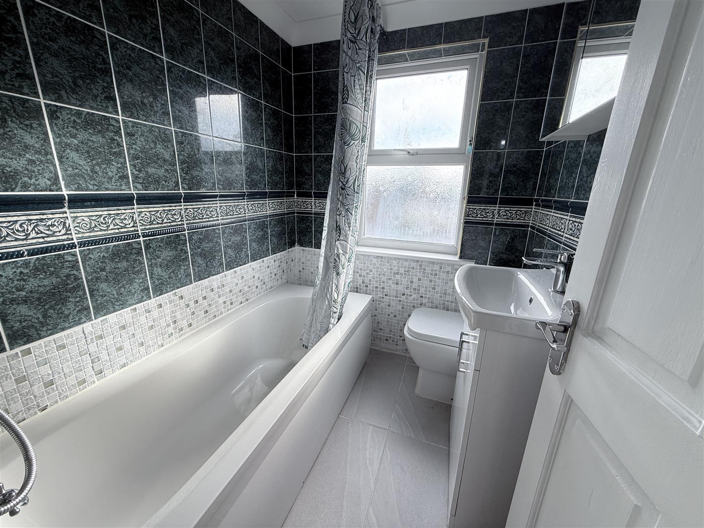 1.88m x 1.52m (6'2 x 5'12) - Window to front, fully tiled, bath, wash hand basin set in vanity unit and low level WC and chrome heated towel rail.