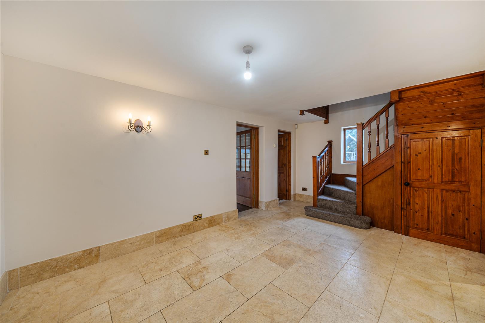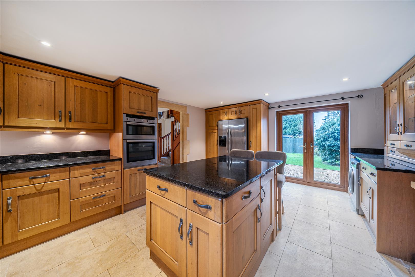 Upon entering, you are welcomed by a spacious and inviting hallway with convenient under-stair storage. To the left, the living room exudes warmth and character, featuring exposed wooden beams, a traditional stone fireplace, and an abundance of natural light from the windows and rear doors that open directly onto the garden. Adjacent to the living room, a versatile office or snug provides the perfect space for work or relaxation. To the right of the hallway, the kitchen boasts stylish wooden cabinetry, stone flooring, and ample storage, with doors leading out to the garden, ideal for indoor-outdoor living and entertaining.