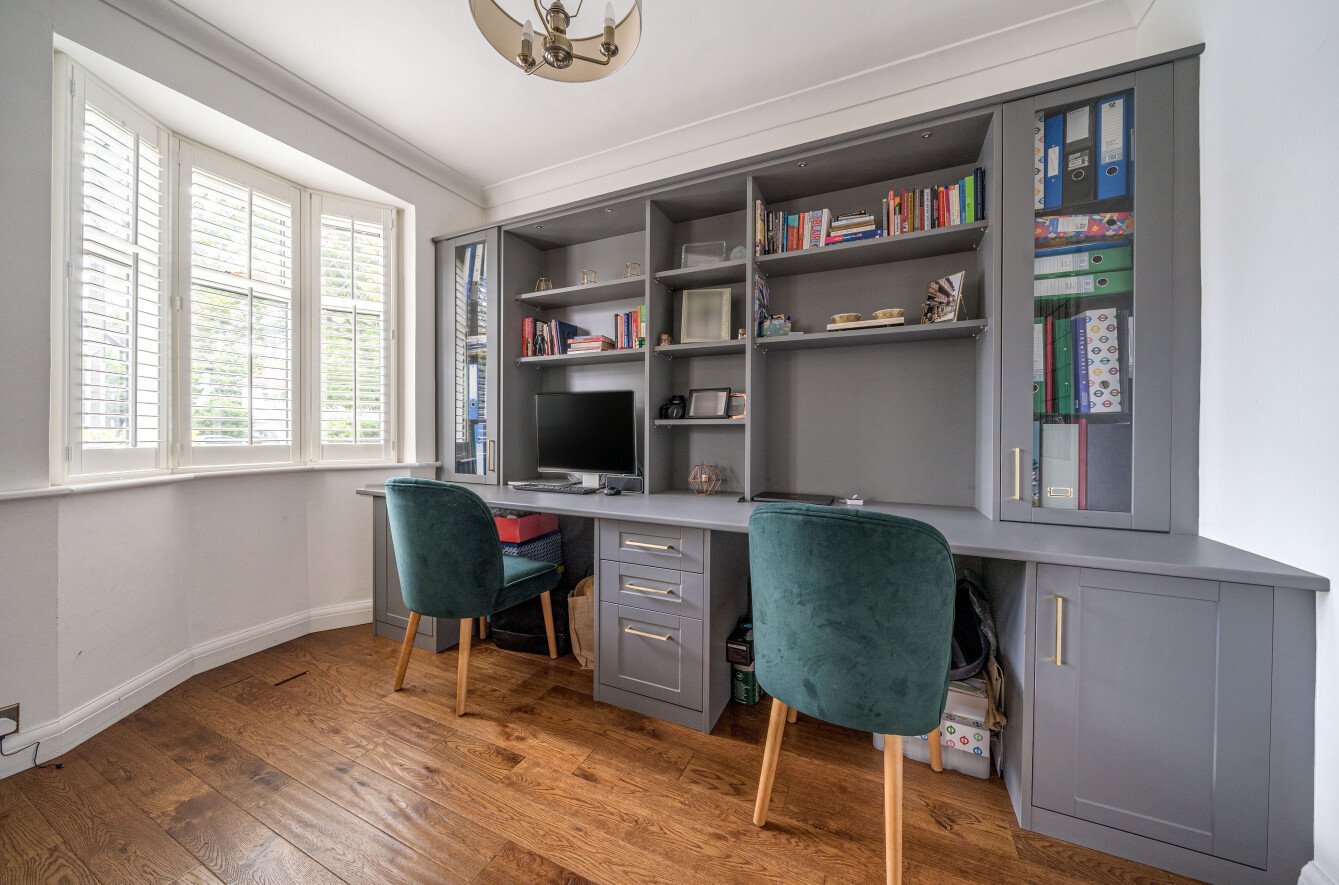 To the ground floor is the double bay reception room with a study area, dining room which leads in to the conservatory then out through sliding doors to the rear garden, kitchen and downstairs shower room and WC.
