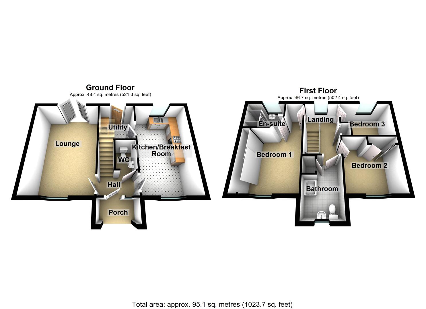 The property is double glazed and gas centrally heated and the accommodation briefly comprises: Entrance hall, downstairs WC, lounge/diner, fitted kitchen/breakfast room with appliances, landing, three double bedrooms, en-suite shower room and family bathroom.