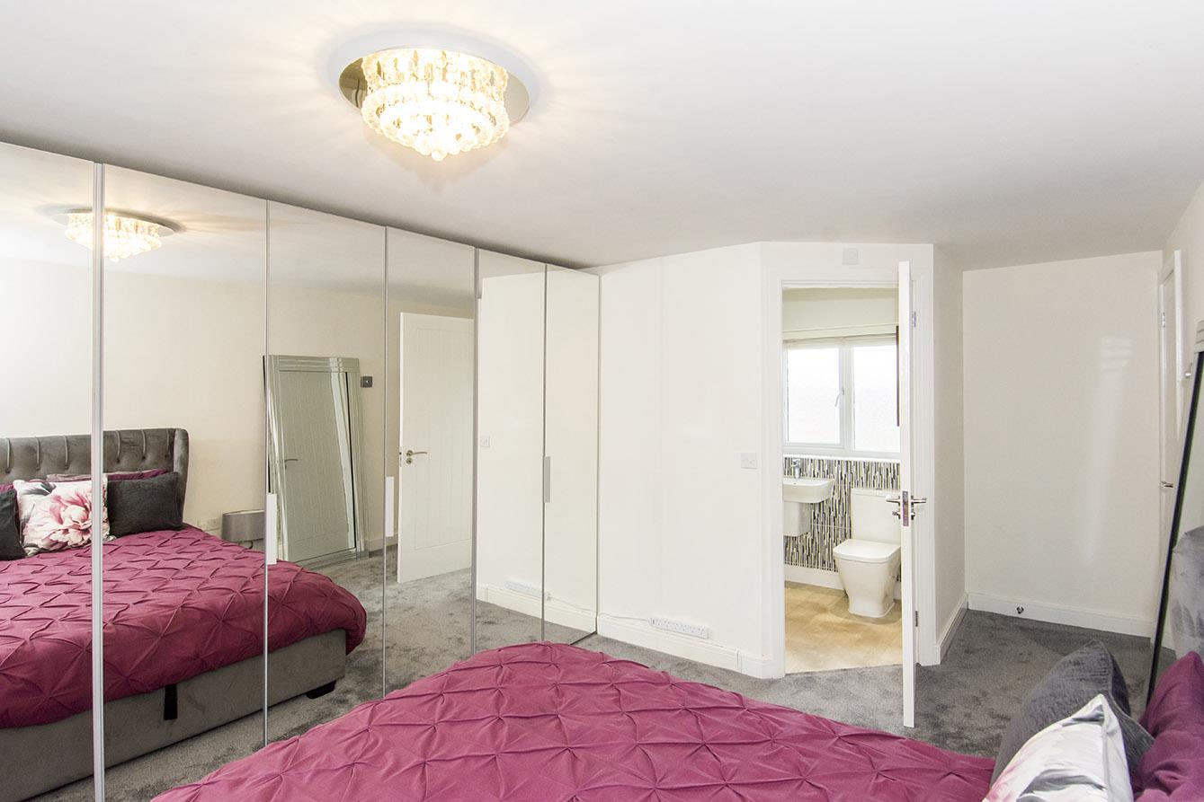 Bedroom One - 5.33m max x 3.35m max (17'6" max x 11'0" max) - Fitted mirrored wardrobes spanning one wall. Double-glazed windows to front elevation. Radiator. Door to en-suite shower room.