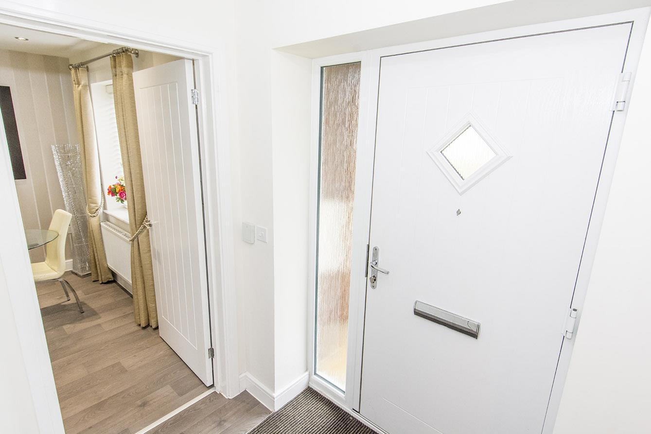 Entrance Hall - Accessed via composite front door. Opaque double-glazed picture window. Security alarm system. Wood laminate flooring. Stairs rise into the first floor. Doors to rooms.