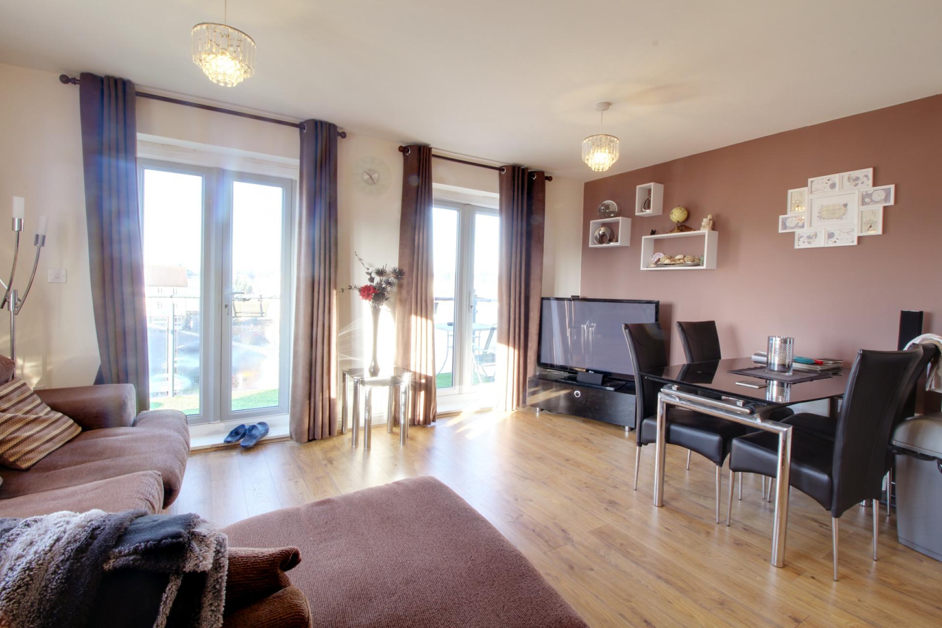 This two-bedroom top floor flat offers a spacious master bedroom complete with its own en-suite shower room, alongside a second double bedroom and family bathroom. The open plan kitchen and living area flows seamlessly onto a private balcony. Residents benefit from lift access and the convenience of a secure bike shed.