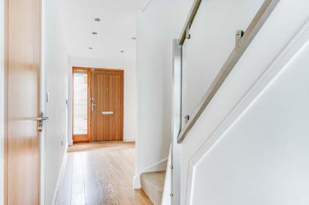 Reception Hall - 6.4 x 2.0 - Recessed ceiling spotlights. Laminate wood flooring. Stairs up to first floor. Under stairs storage cupboard. Internal door to garage.